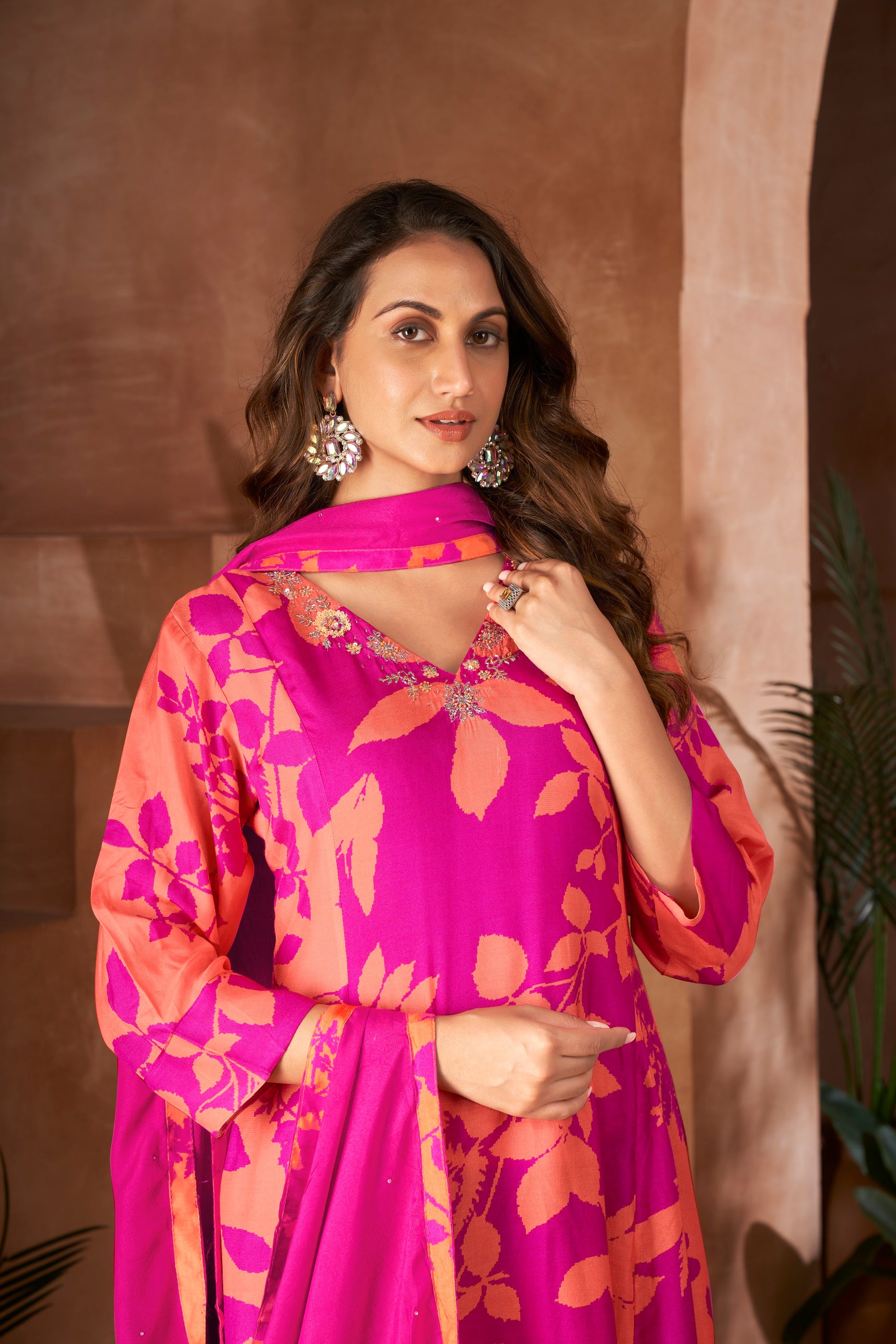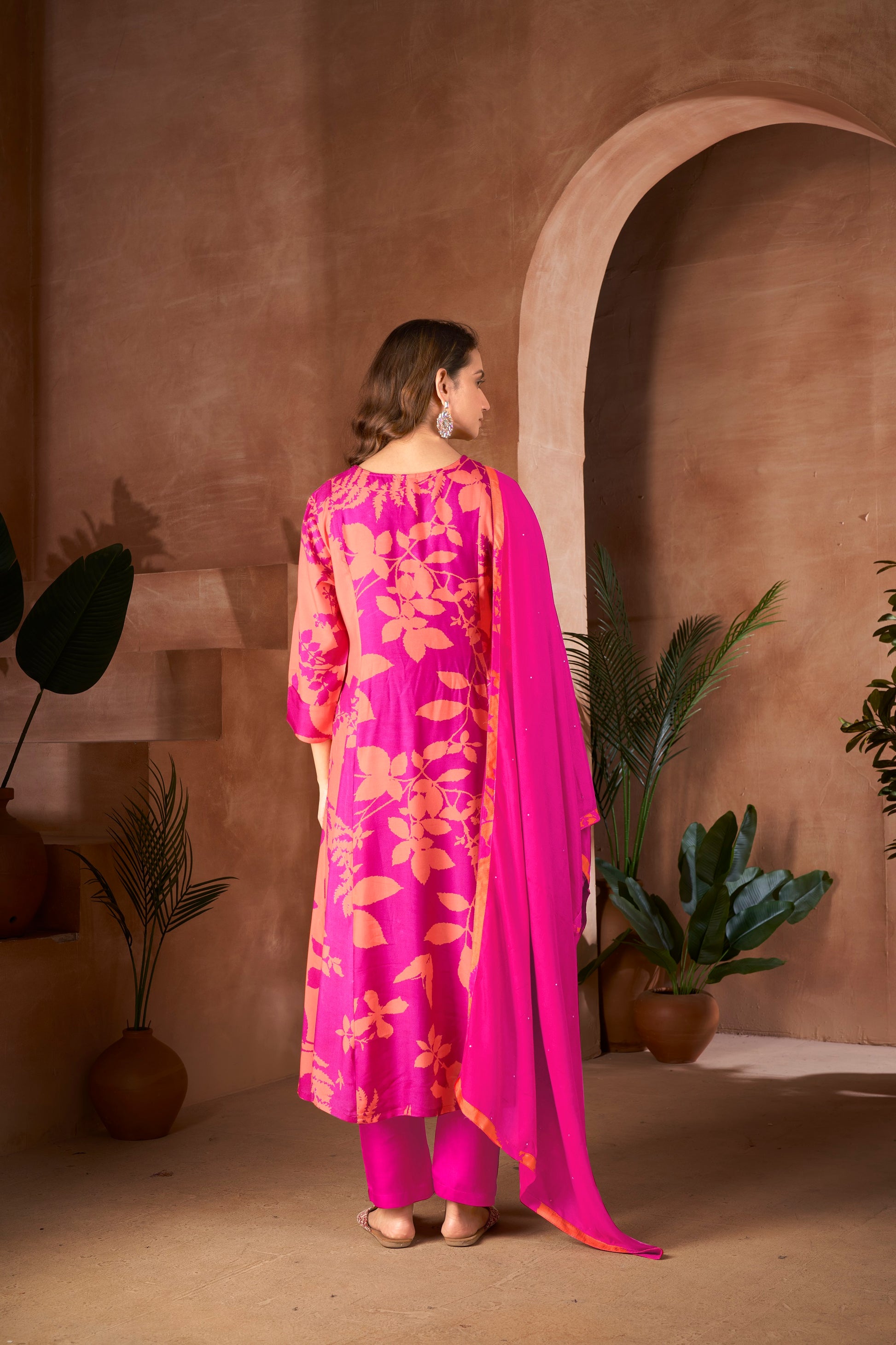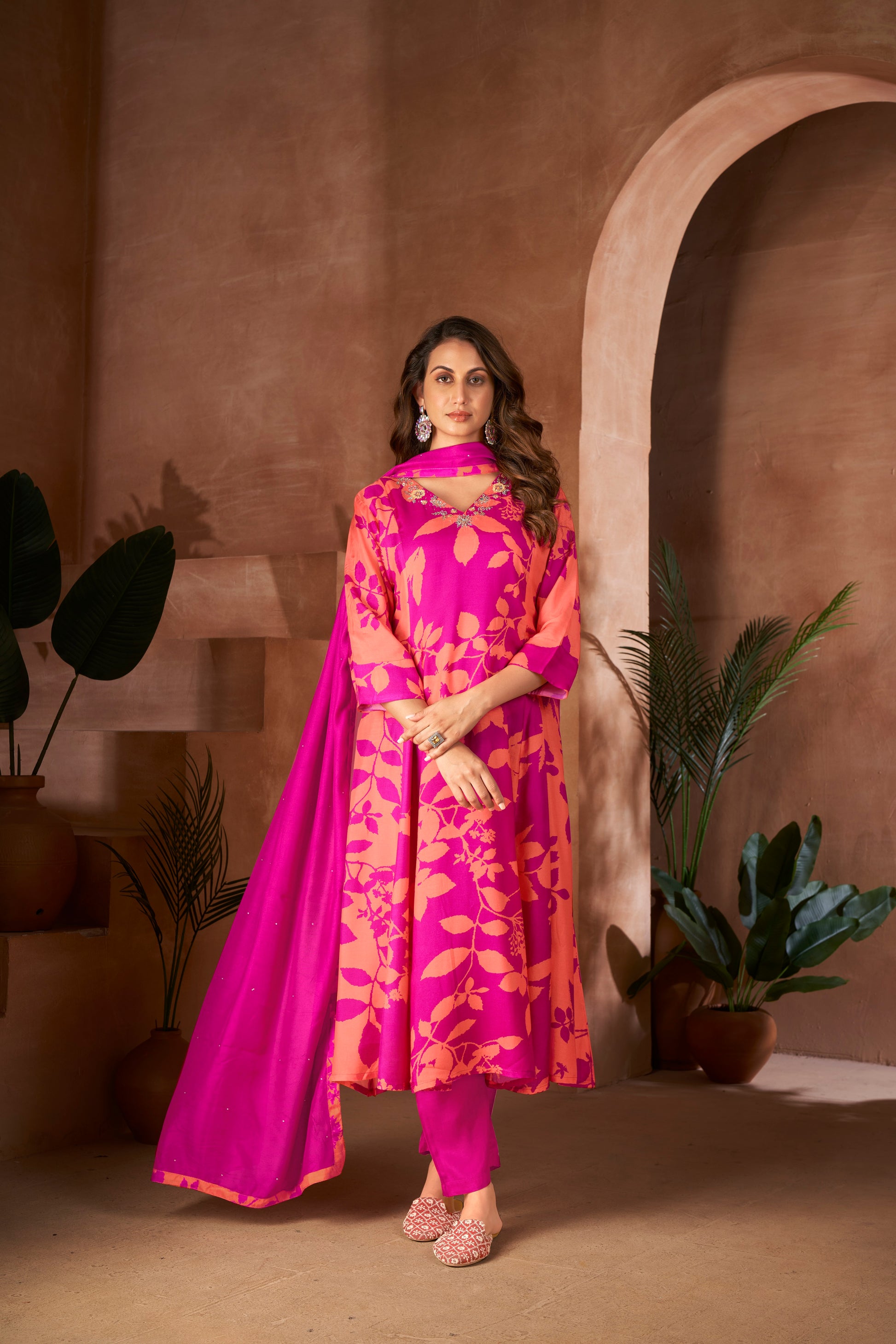 Women Pure Muslin Digital Printed Hand Work Anarkali Suit