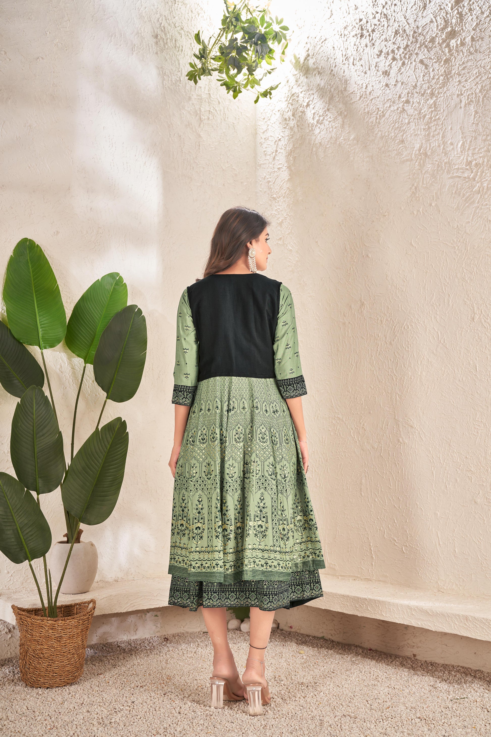 Natural-dyed colours might bleed during the first few washes or rub against the skin & other light-coloured garments. In the artful process of hand block-printing, embroidery work and stitching, variations are likely to come into existence. These irregularities are the hallmark of all handmade products and give each style a unique identity.