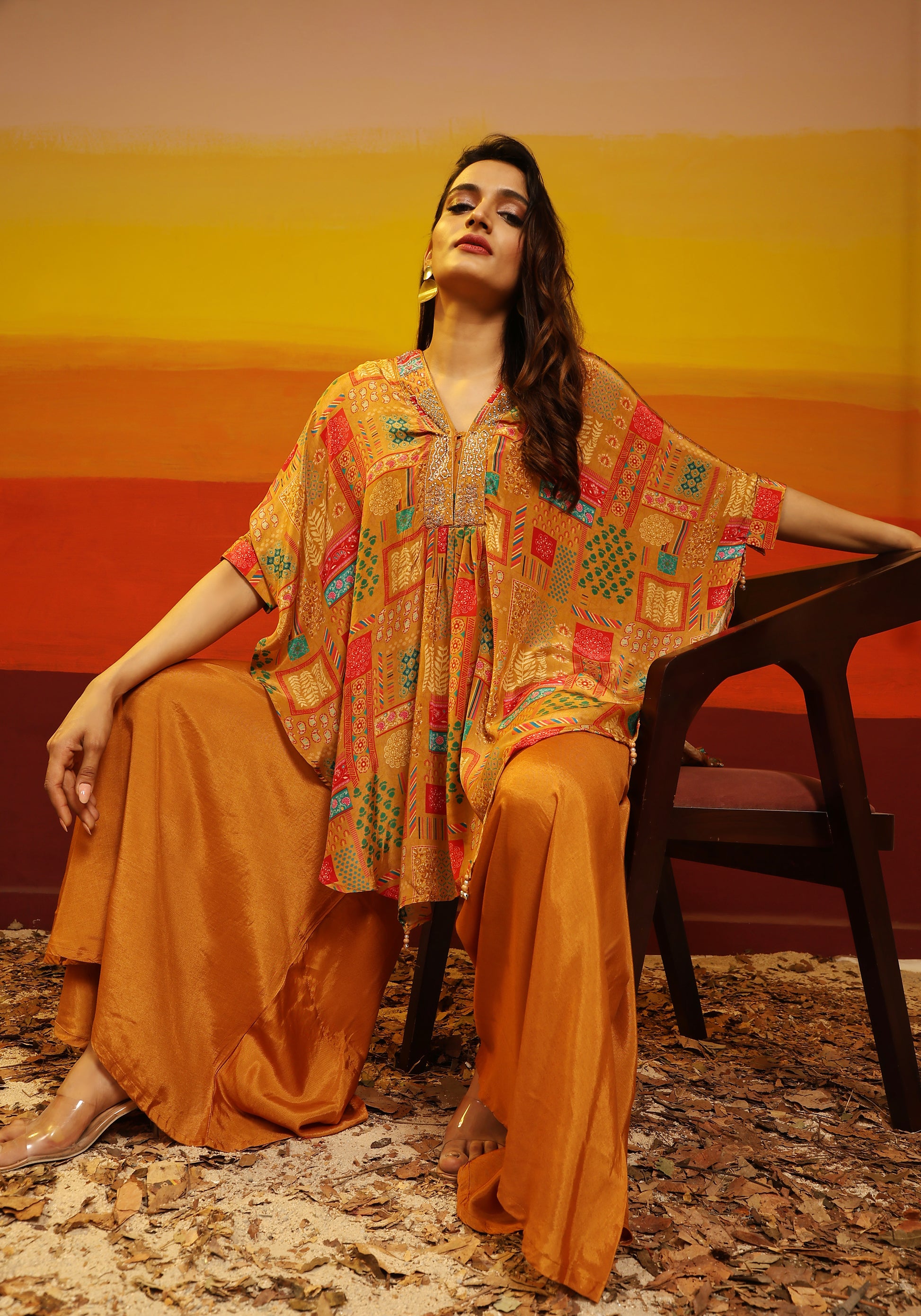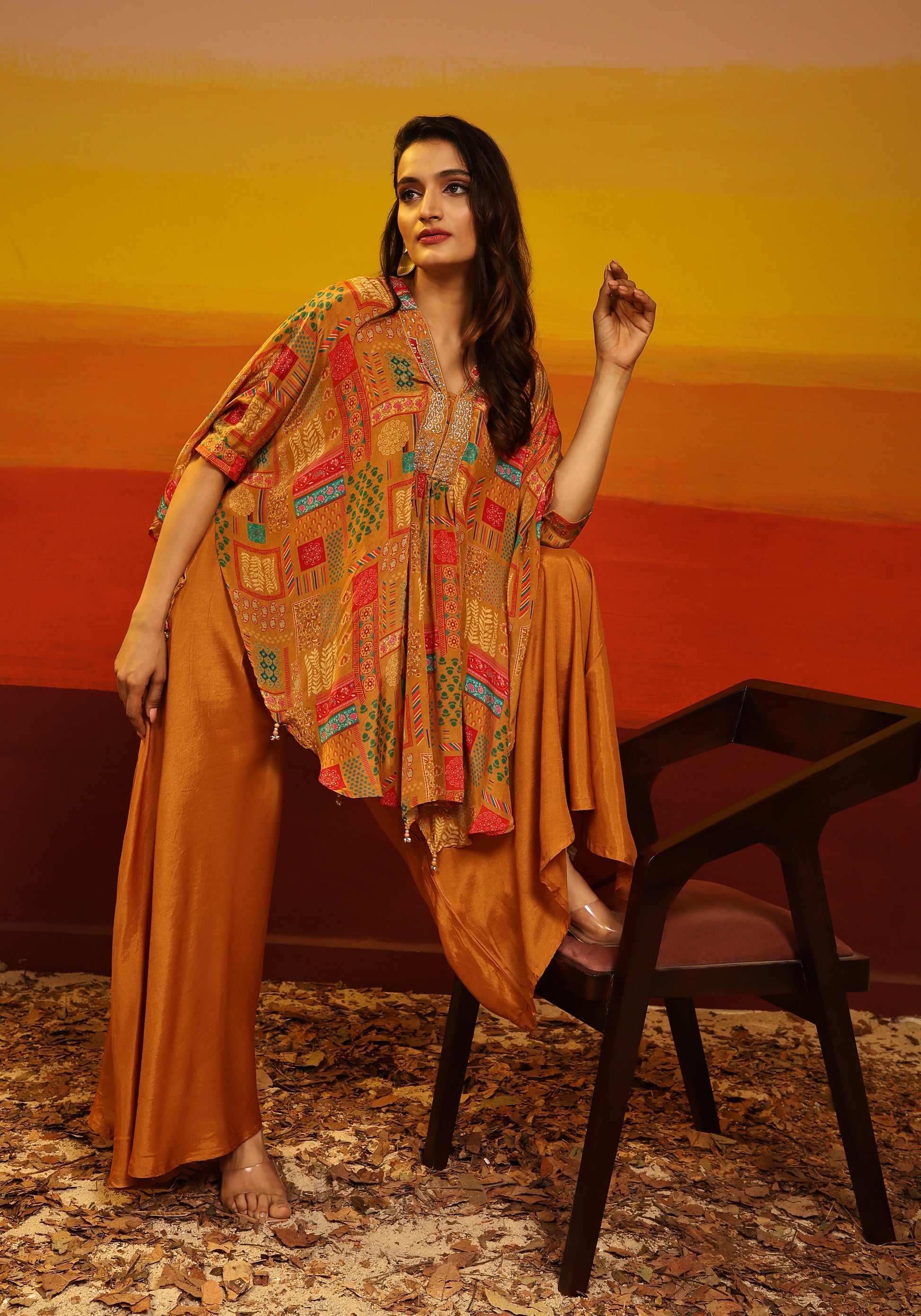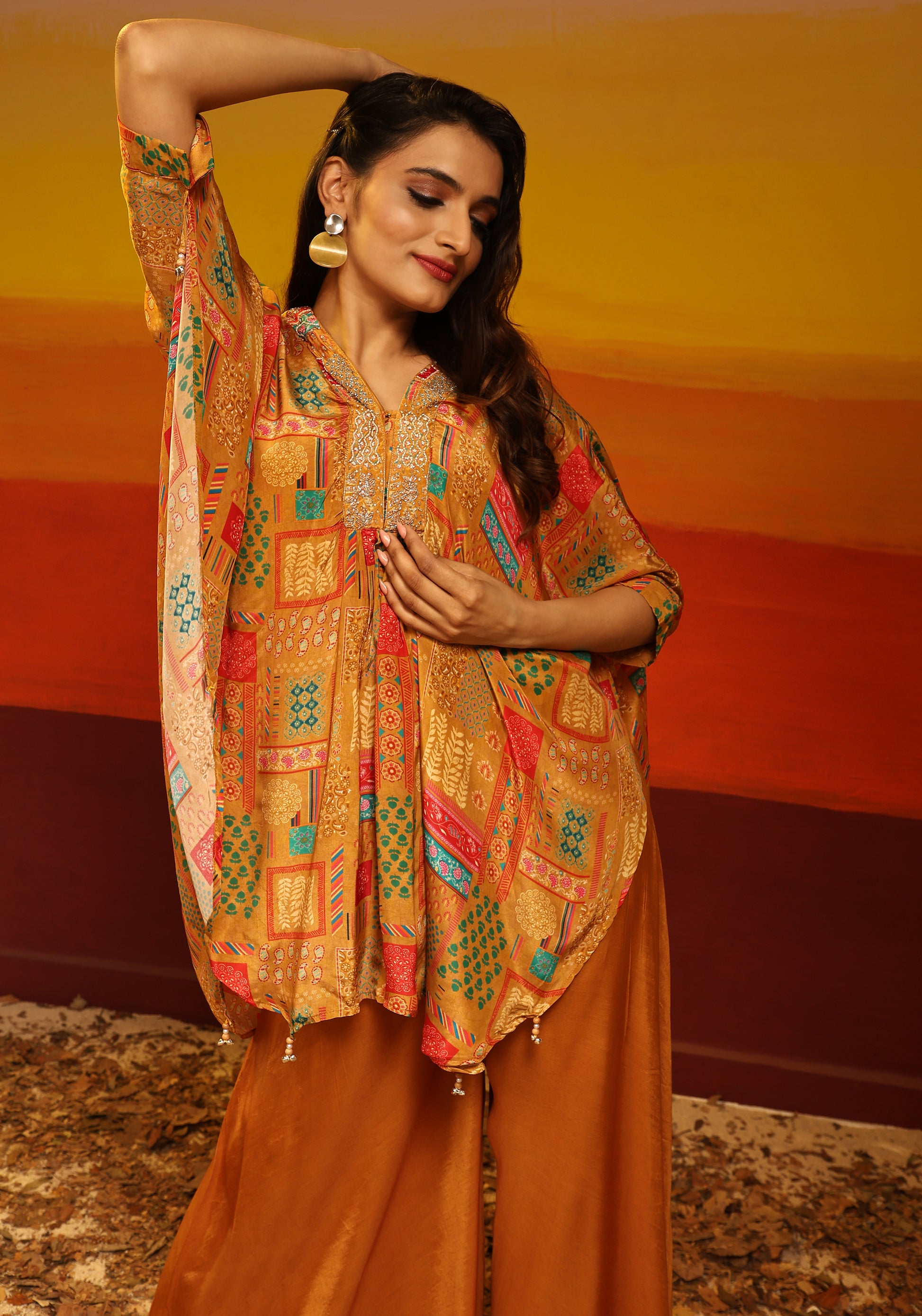Premium Stylish Printed Muslin Cord Set Kaftan Style