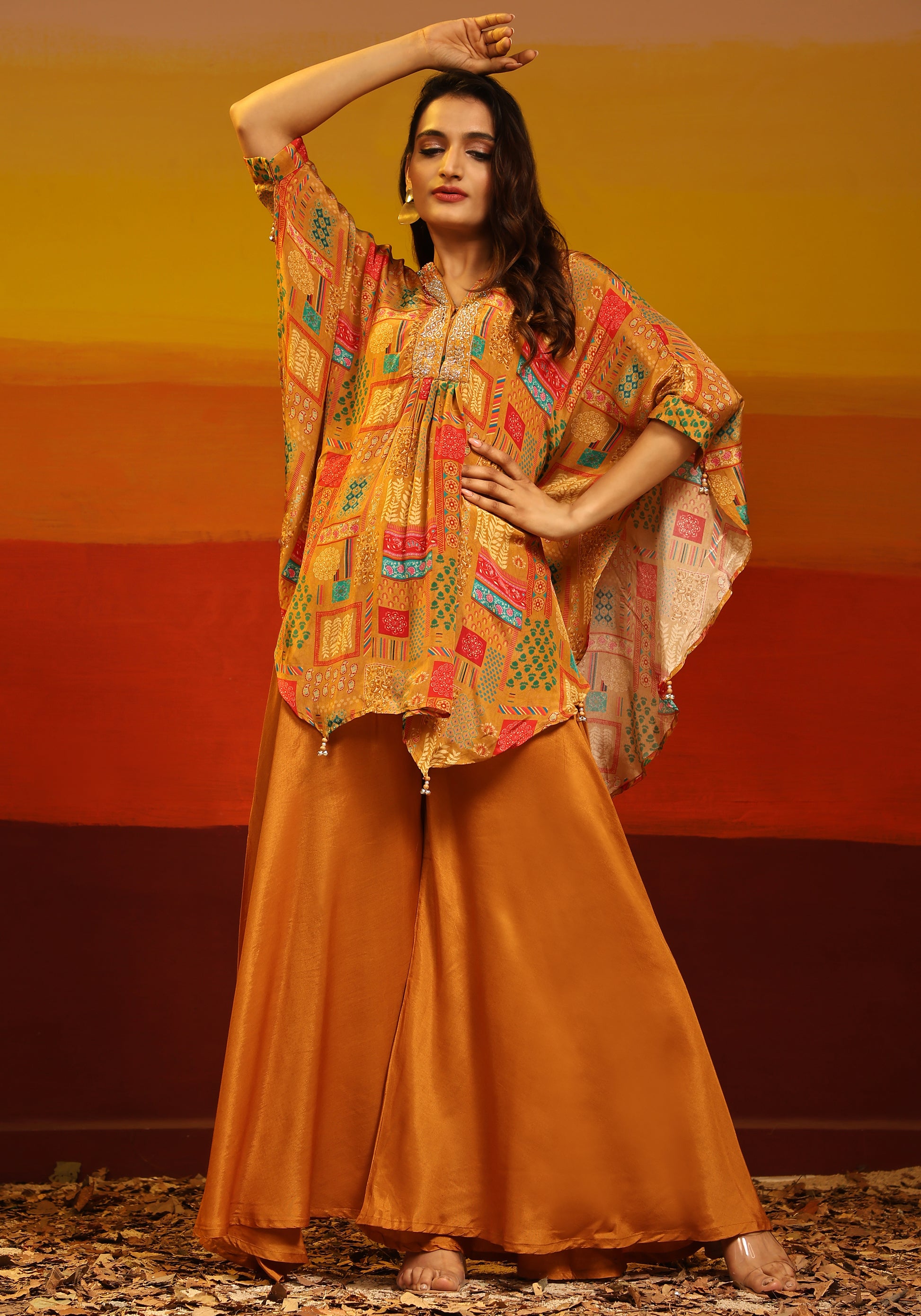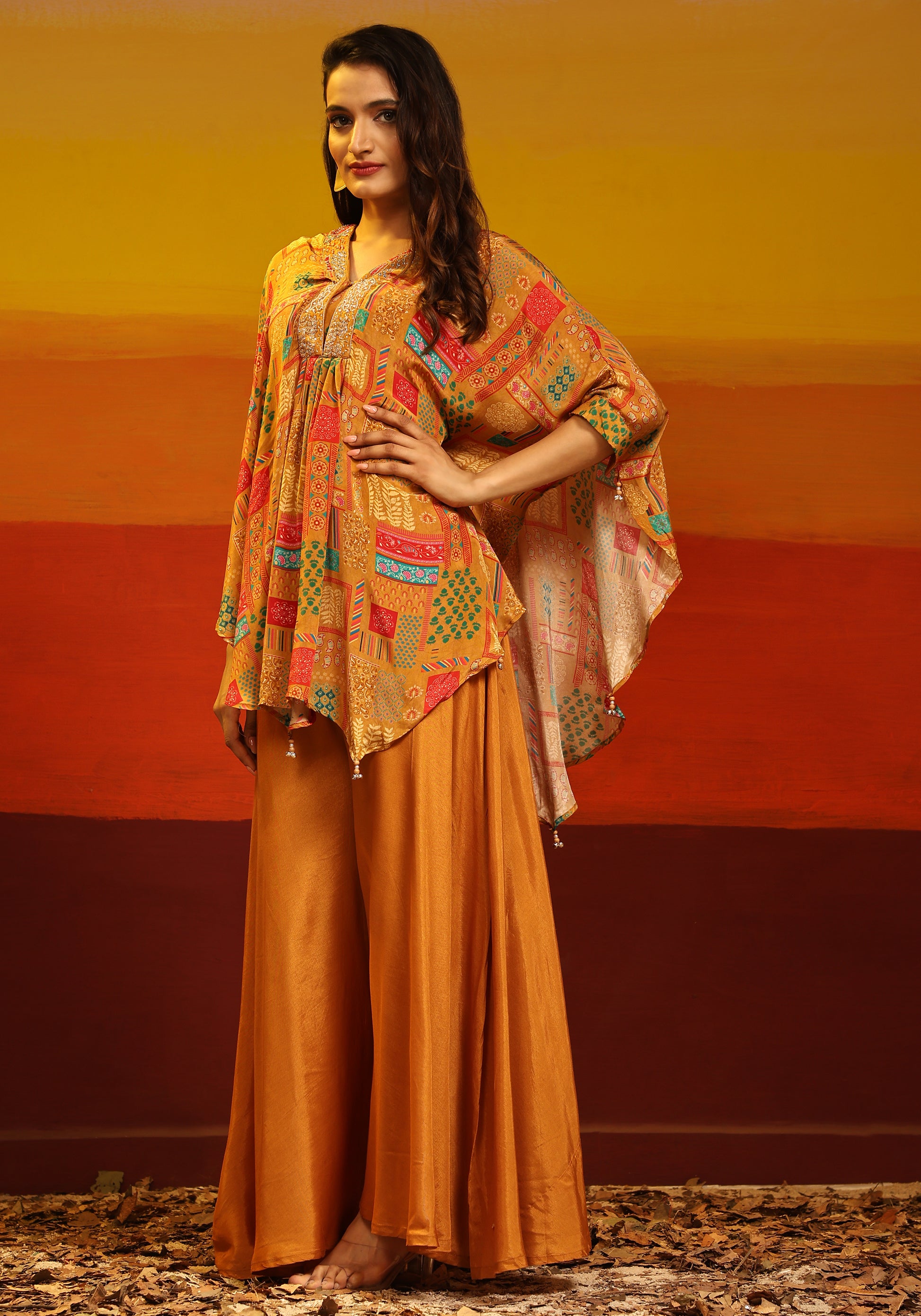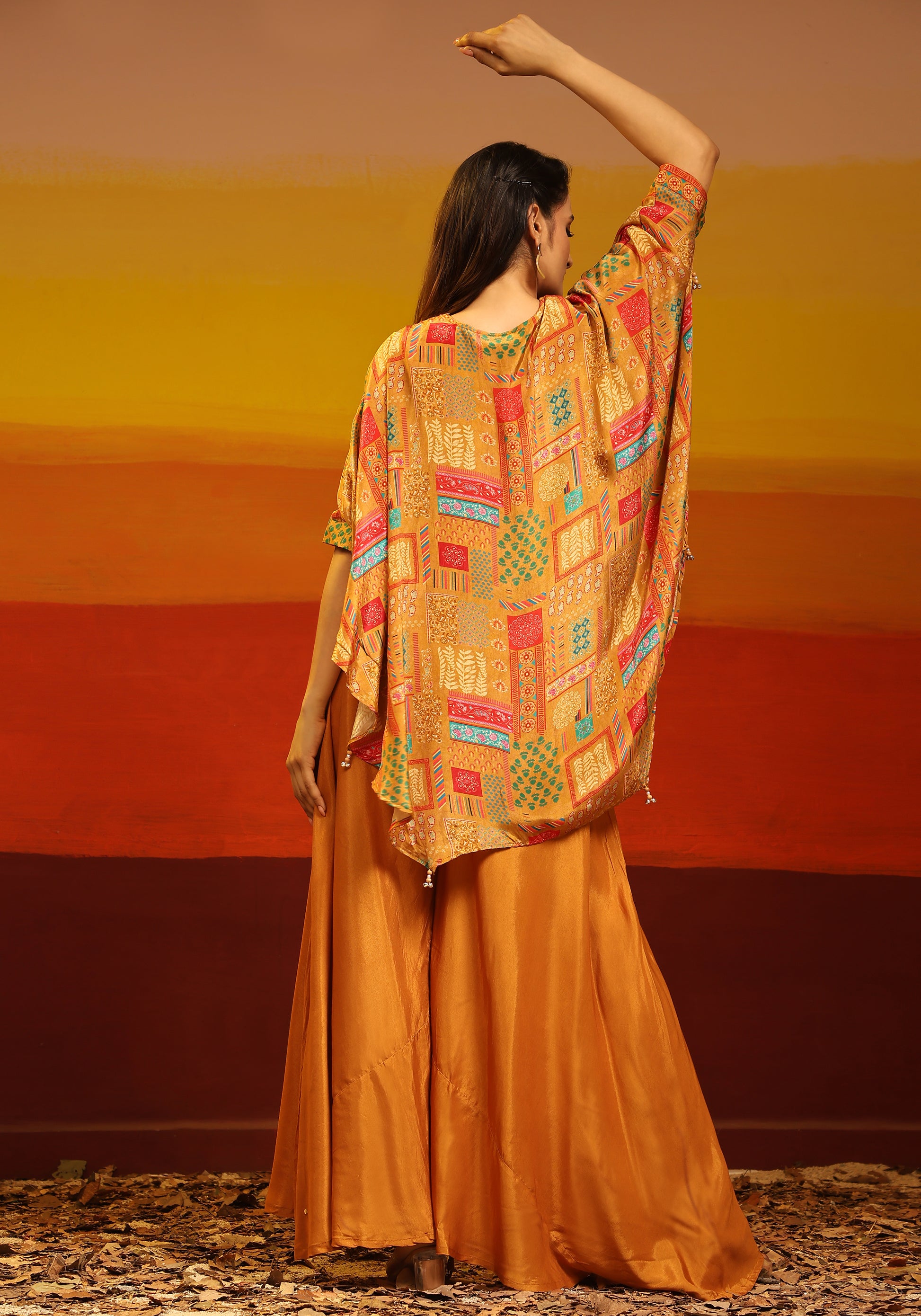 Natural-dyed colours might bleed during the first few washes or rub against the skin & other light-coloured garments. In the artful process of hand block-printing, embroidery work and stitching, variations are likely to come into existence. These irregularities are the hallmark of all handmade products and give each style a unique identity.