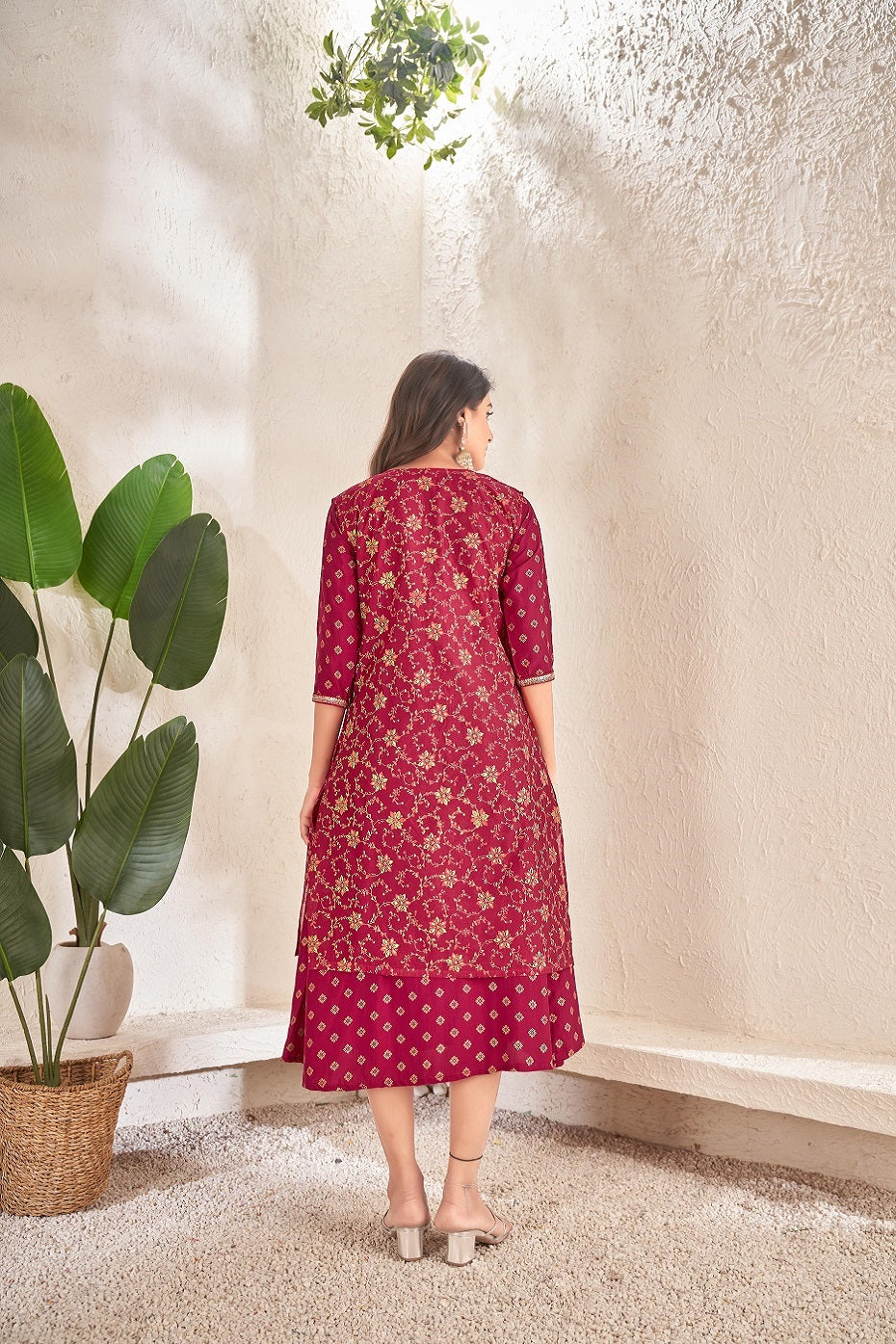 Natural-dyed colours might bleed during the first few washes or rub against the skin & other light-coloured garments. In the artful process of hand block-printing, embroidery work and stitching, variations are likely to come into existence. These irregularities are the hallmark of all handmade products and give each style a unique identity.