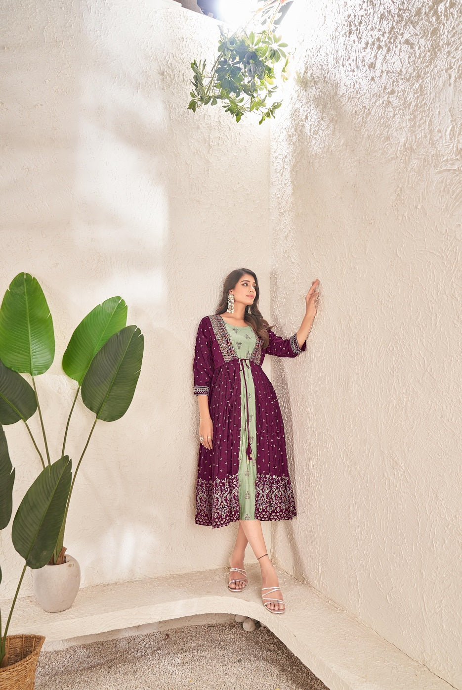 Natural-dyed colours might bleed during the first few washes or rub against the skin & other light-coloured garments. In the artful process of hand block-printing, embroidery work and stitching, variations are likely to come into existence. These irregularities are the hallmark of all handmade products and give each style a unique identity.