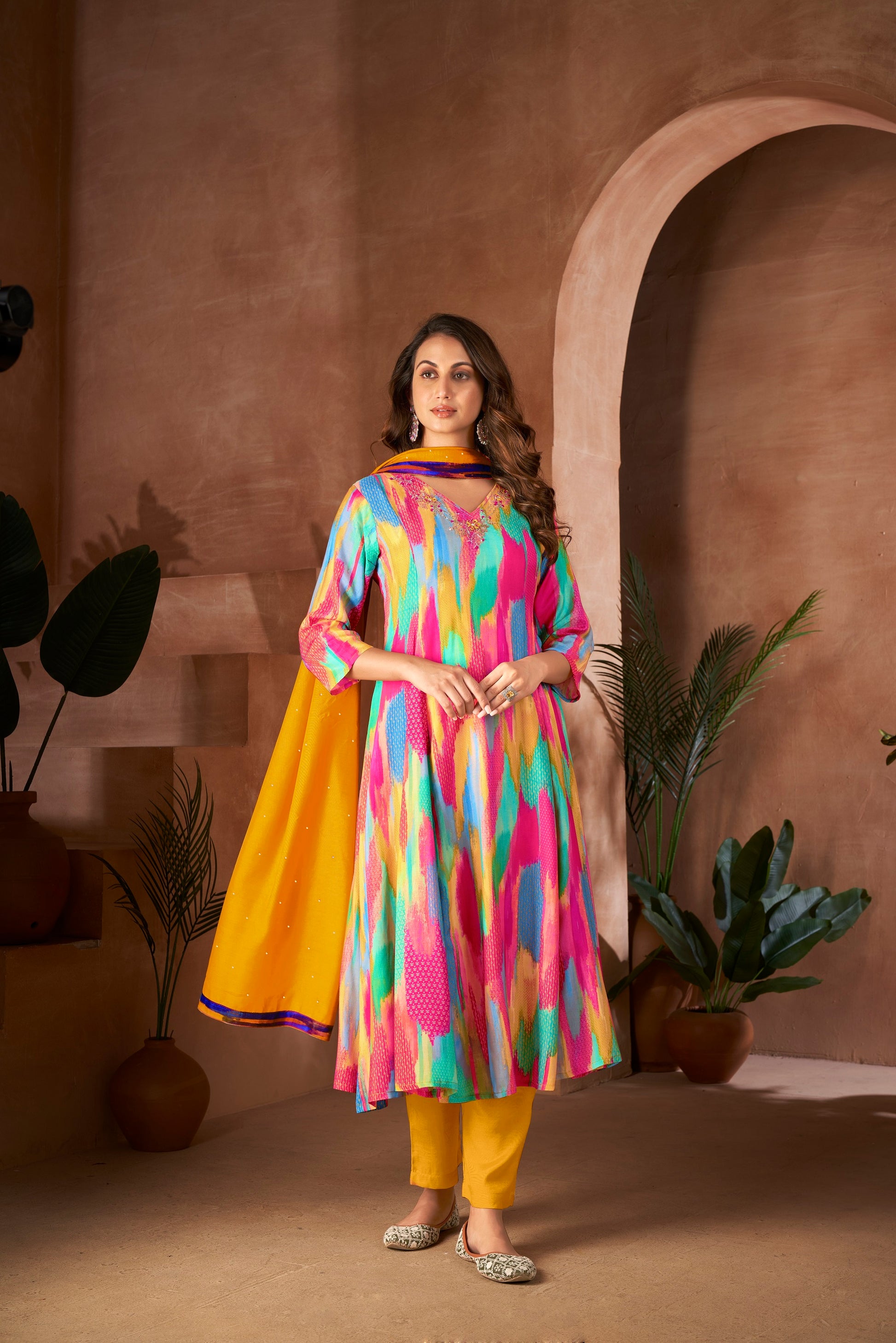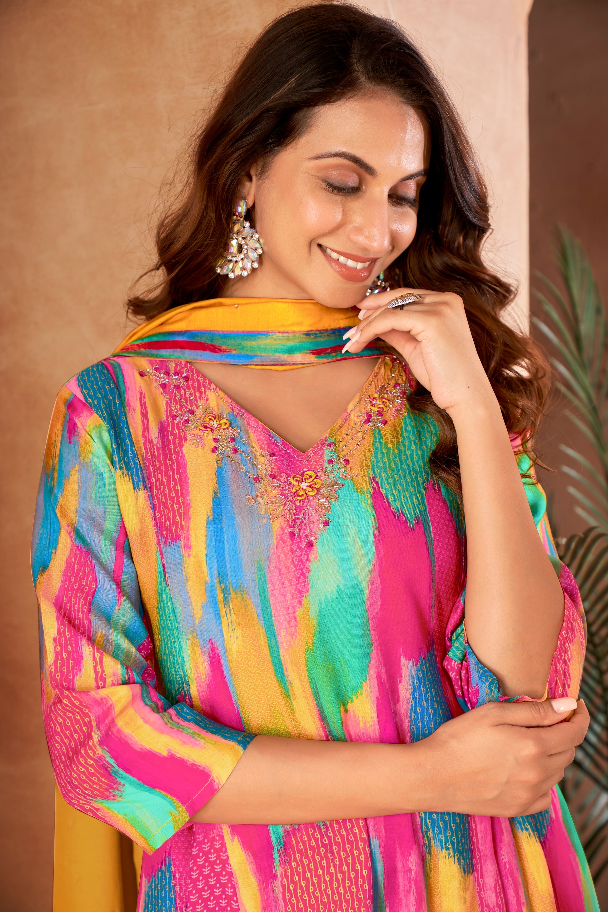 Women Pure Muslin Digital Printed Hand Work Anarkali Suit