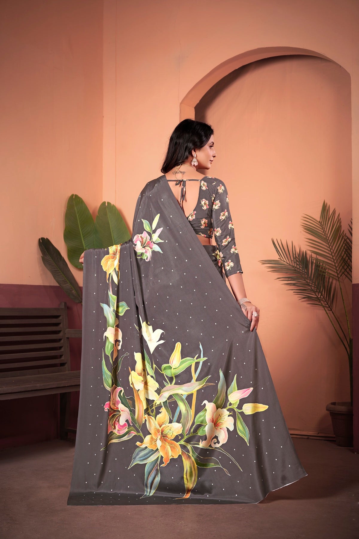 Coffee brown is underrated – this saree makes it look super chic.