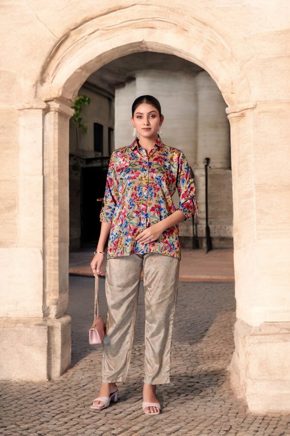 Elevate your style with our Elegant Crepe Silk Co-Ord Set, designed for effortless sophistication. Crafted from premium crepe silk, this set offers a luxurious feel with a graceful drape, ensuring both comfort and elegance.