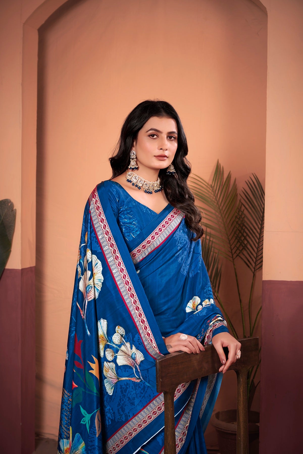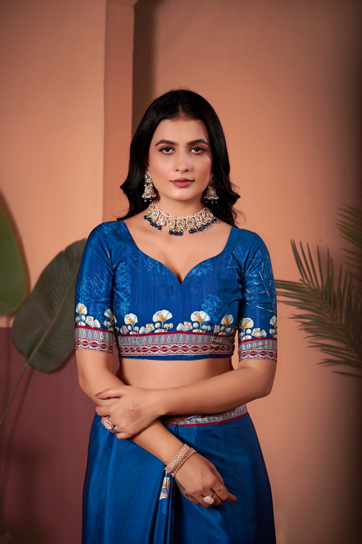 Elevate your ethnic wardrobe with this royal blue saree, designed with a positional floral print and foil detailing that adds a touch of radiance and sophistication. The foil-accented royal blue pallu enhances the saree’s elegance, creating a regal and eye-catching appeal. Paired with a butti ethno floral taste unstitched blouse piece, this saree perfectly blends tradition with contemporary charm, making it an ideal choice for weddings, festive occasions, and cultural celebrations.