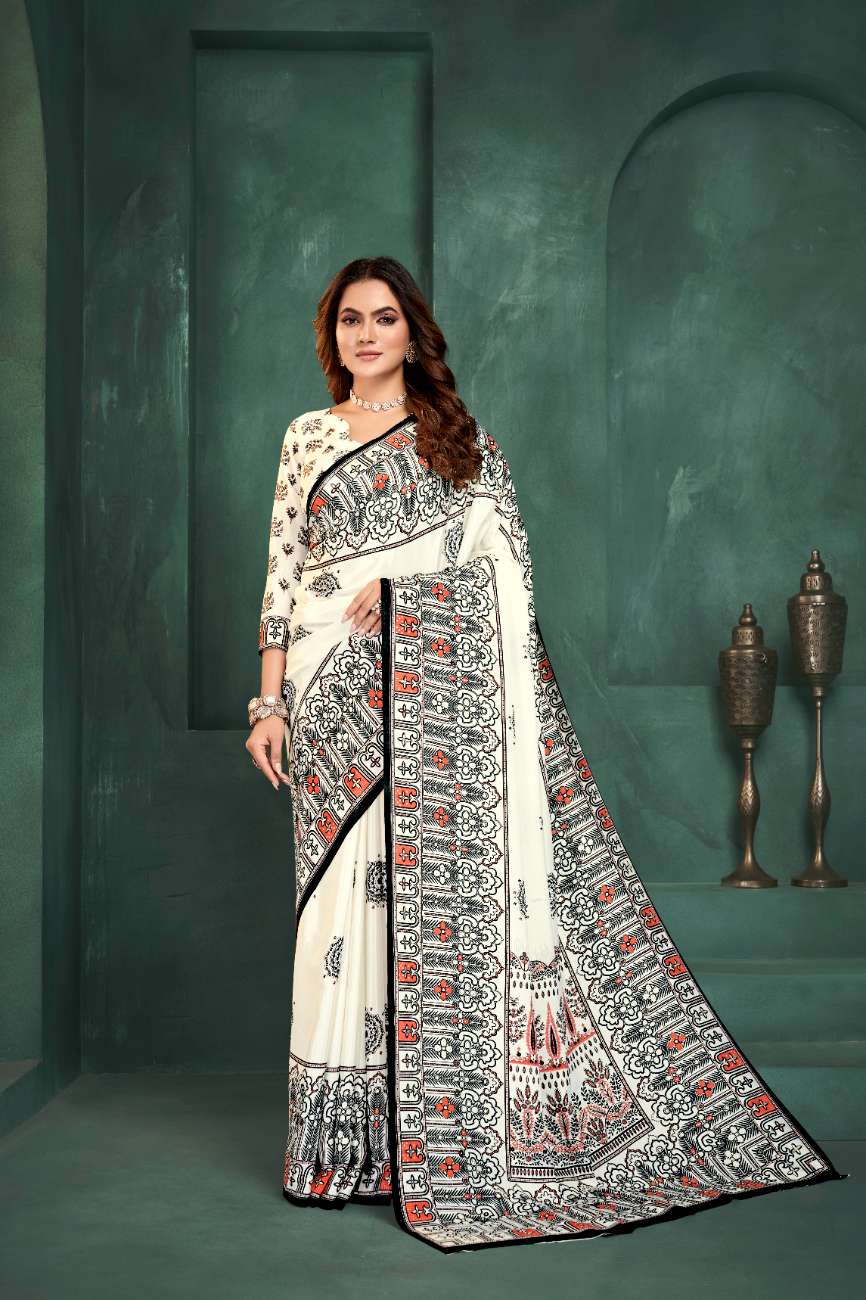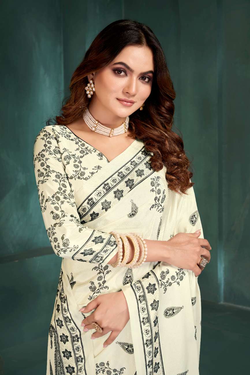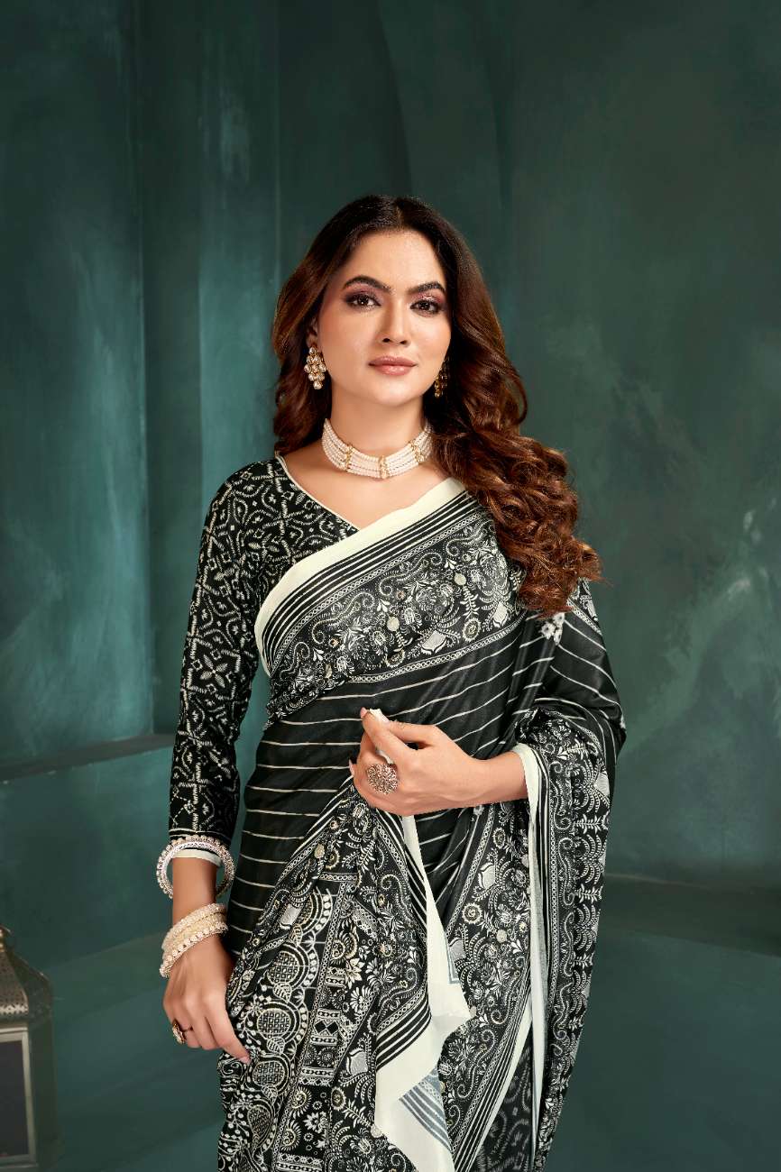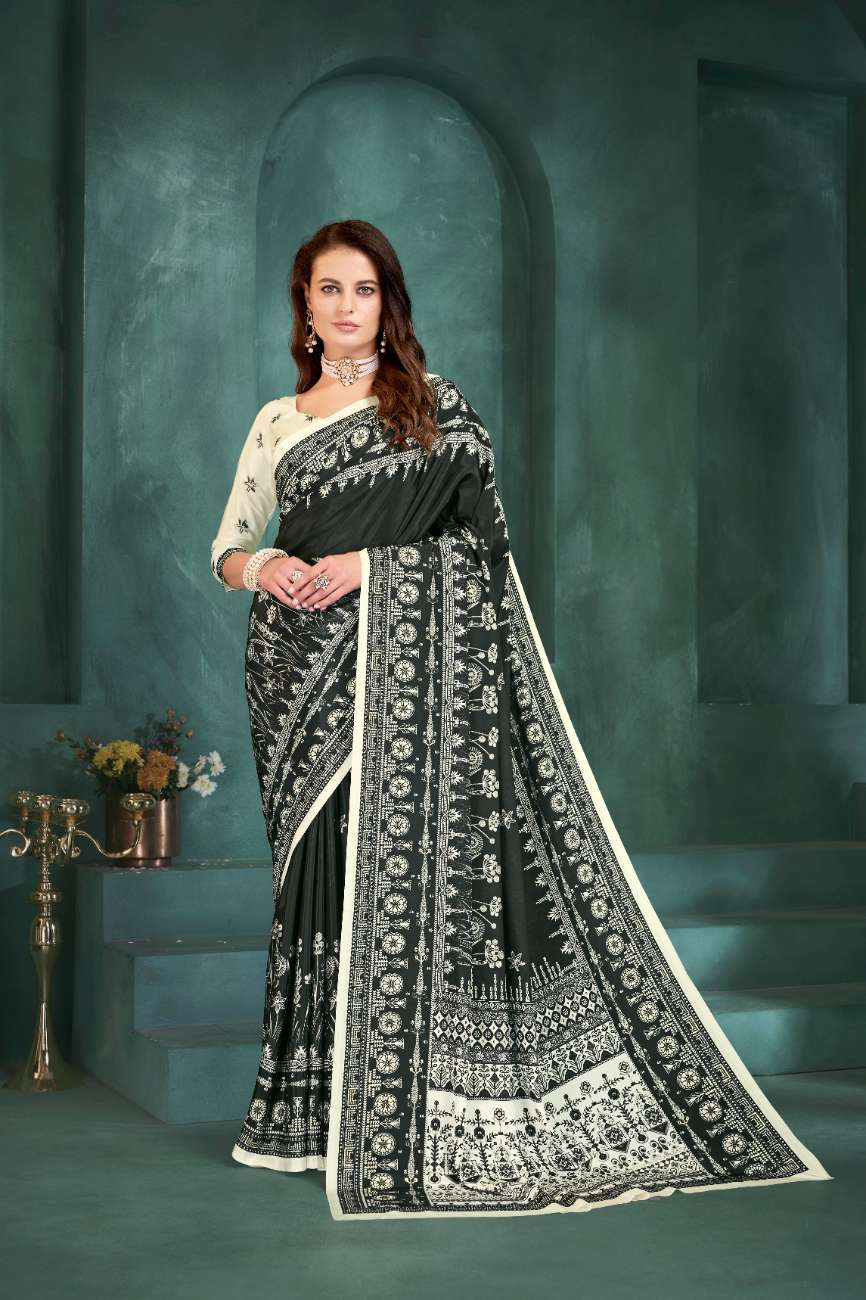 Step into timeless elegance with GRACE, our latest designer saree crafted in luxurious crepe silk and adorned with exquisite Royal Rajwadi foil prints. This saree is a tribute to regal heritage, reimagined for the modern woman.