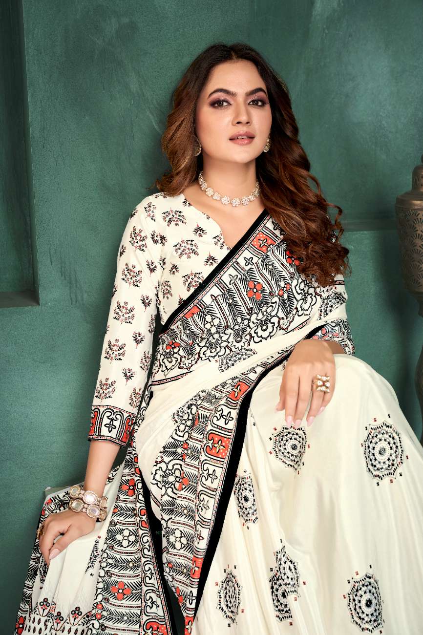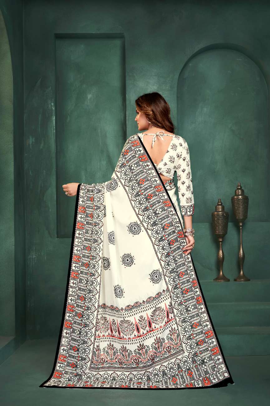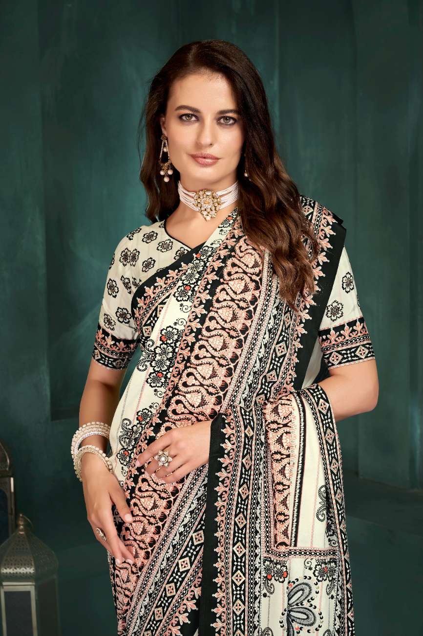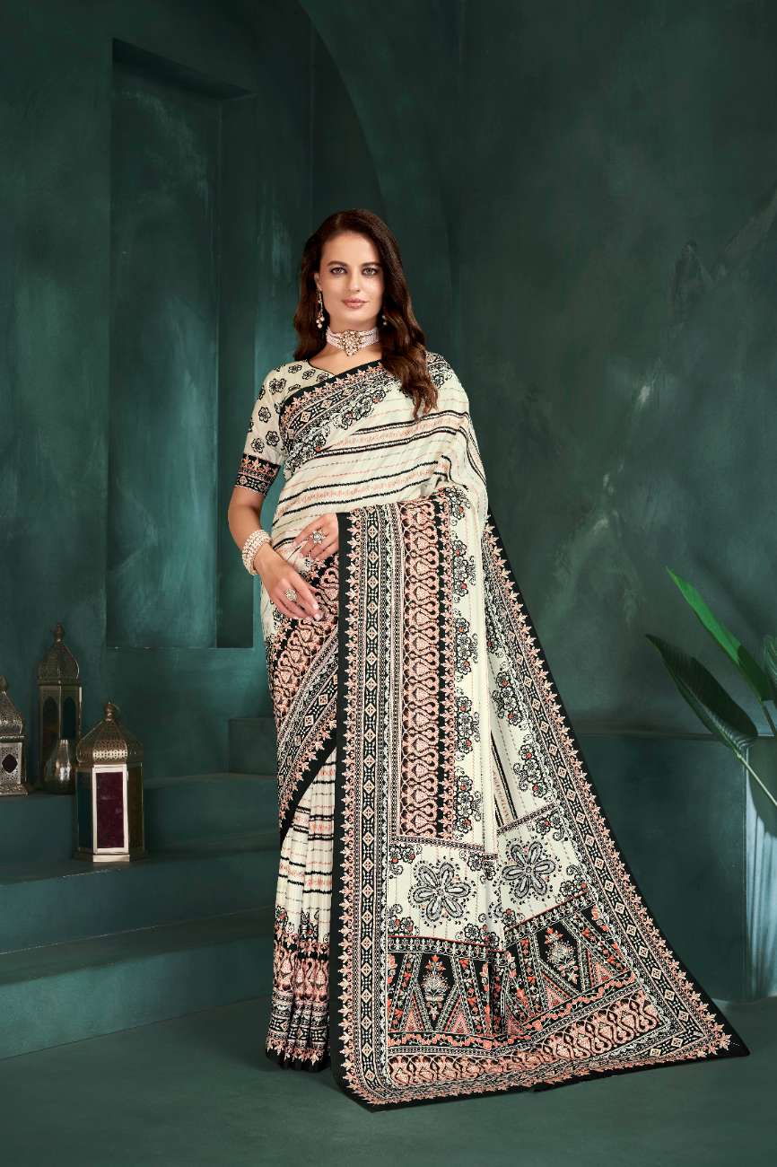 Step into timeless elegance with GRACE, our latest designer saree crafted in luxurious crepe silk and adorned with exquisite Royal Rajwadi foil prints. This saree is a tribute to regal heritage, reimagined for the modern woman.