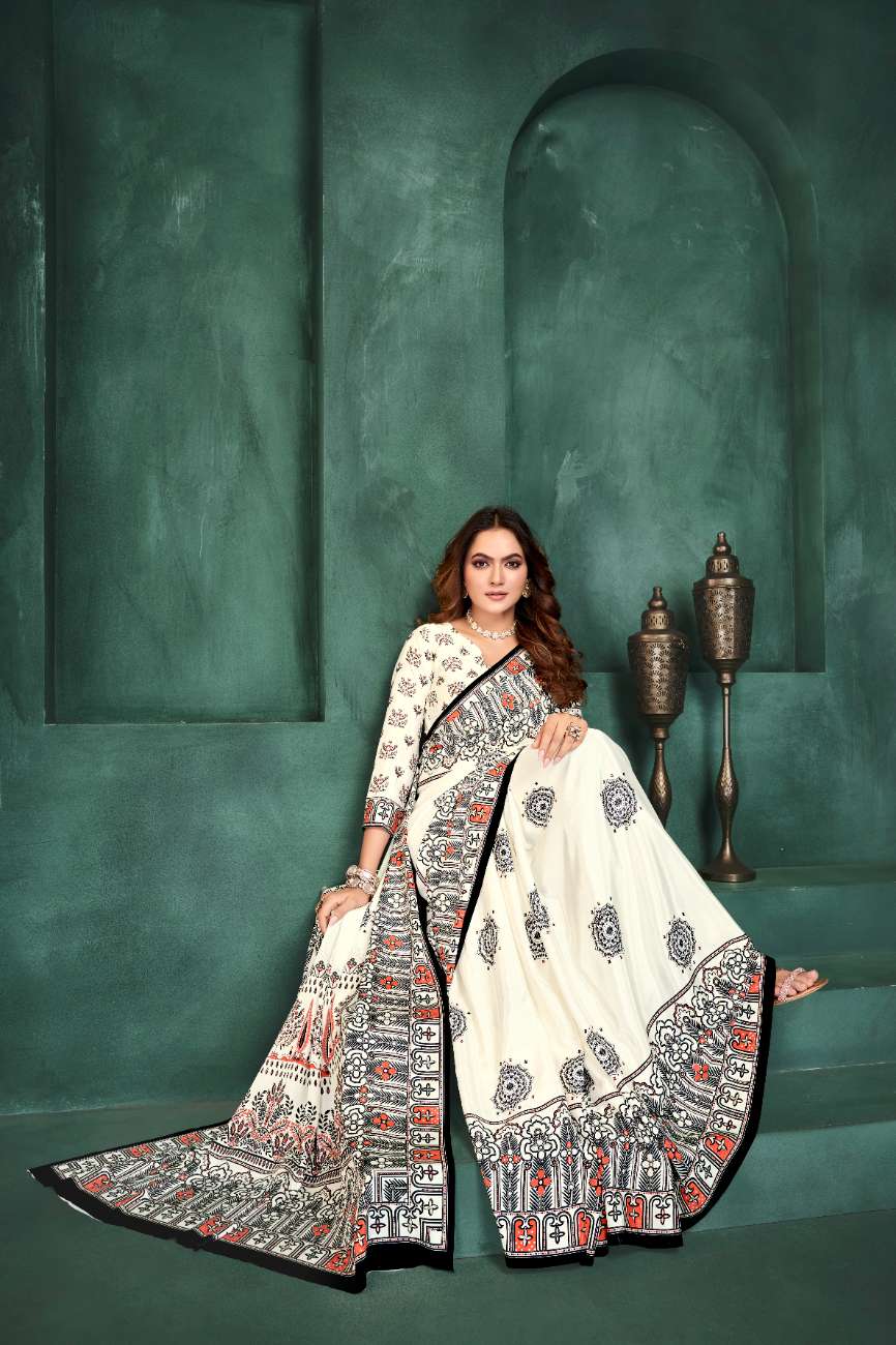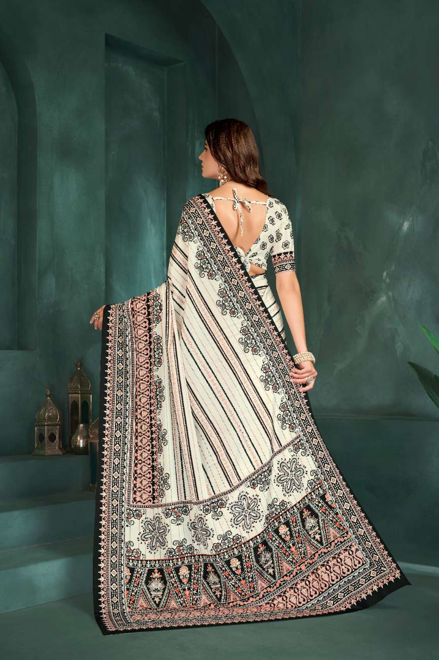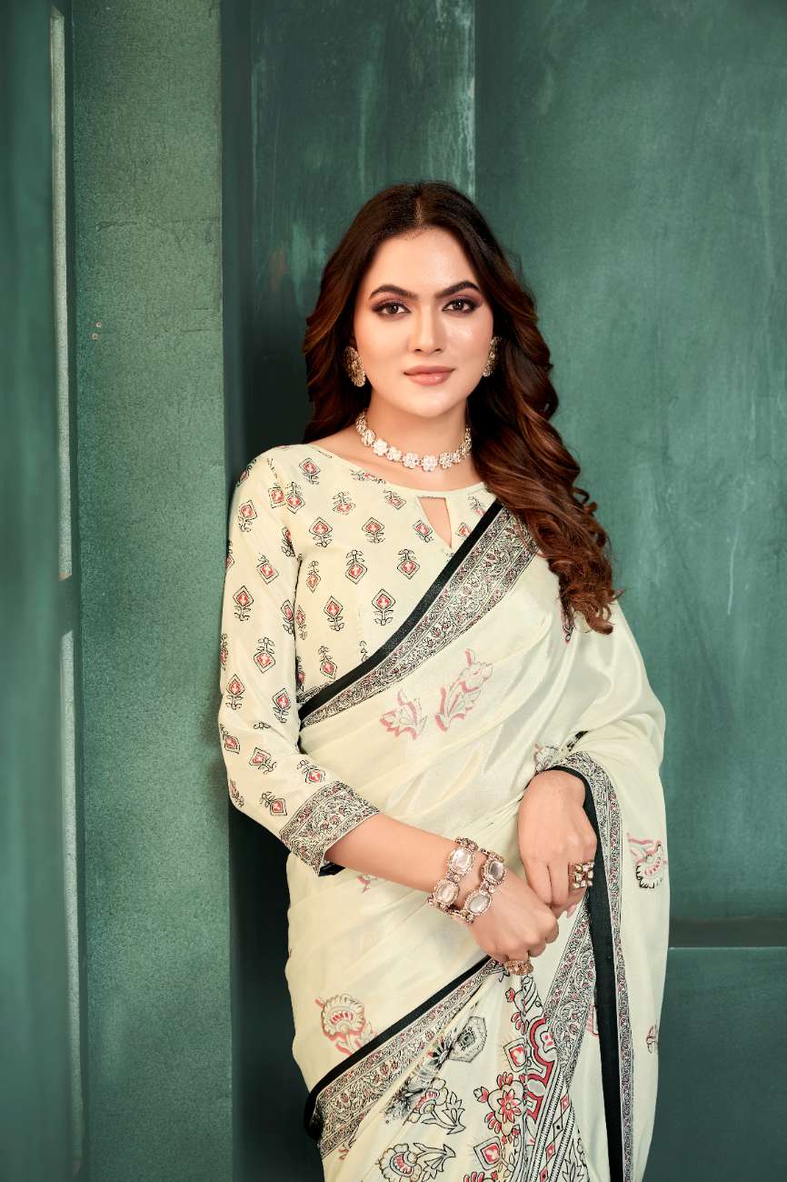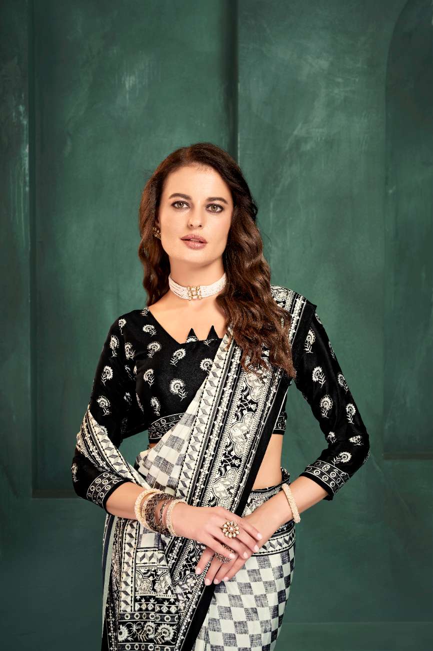 Step into timeless elegance with GRACE, our latest designer saree crafted in luxurious crepe silk and adorned with exquisite Royal Rajwadi foil prints. This saree is a tribute to regal heritage, reimagined for the modern woman.