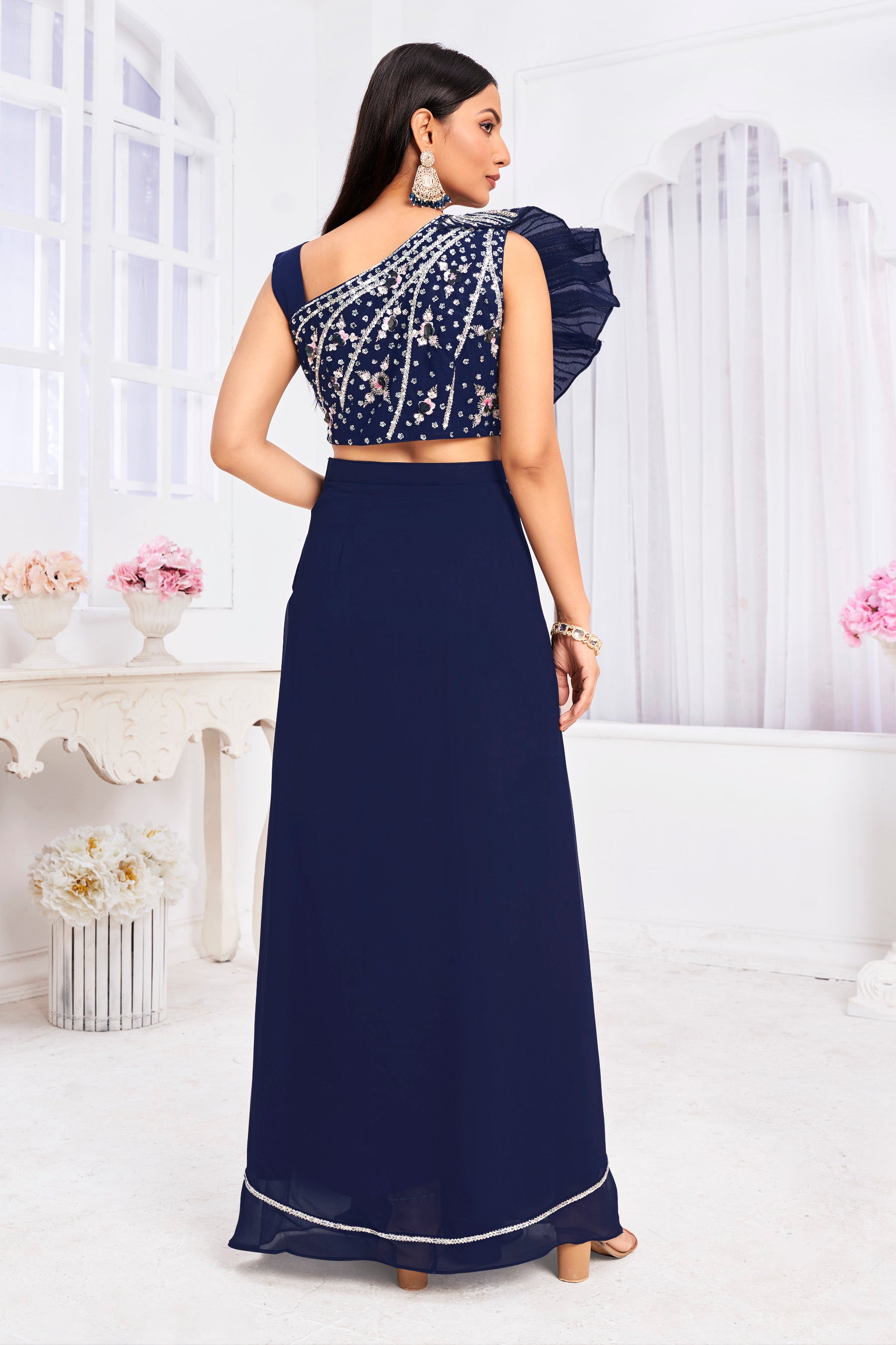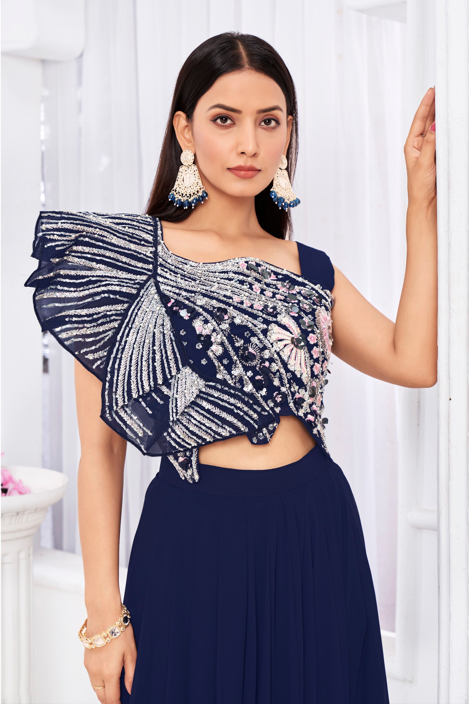 Premium Georgette Embroidery & Hand Work Fancy Crop Top/ Sharara & Choli