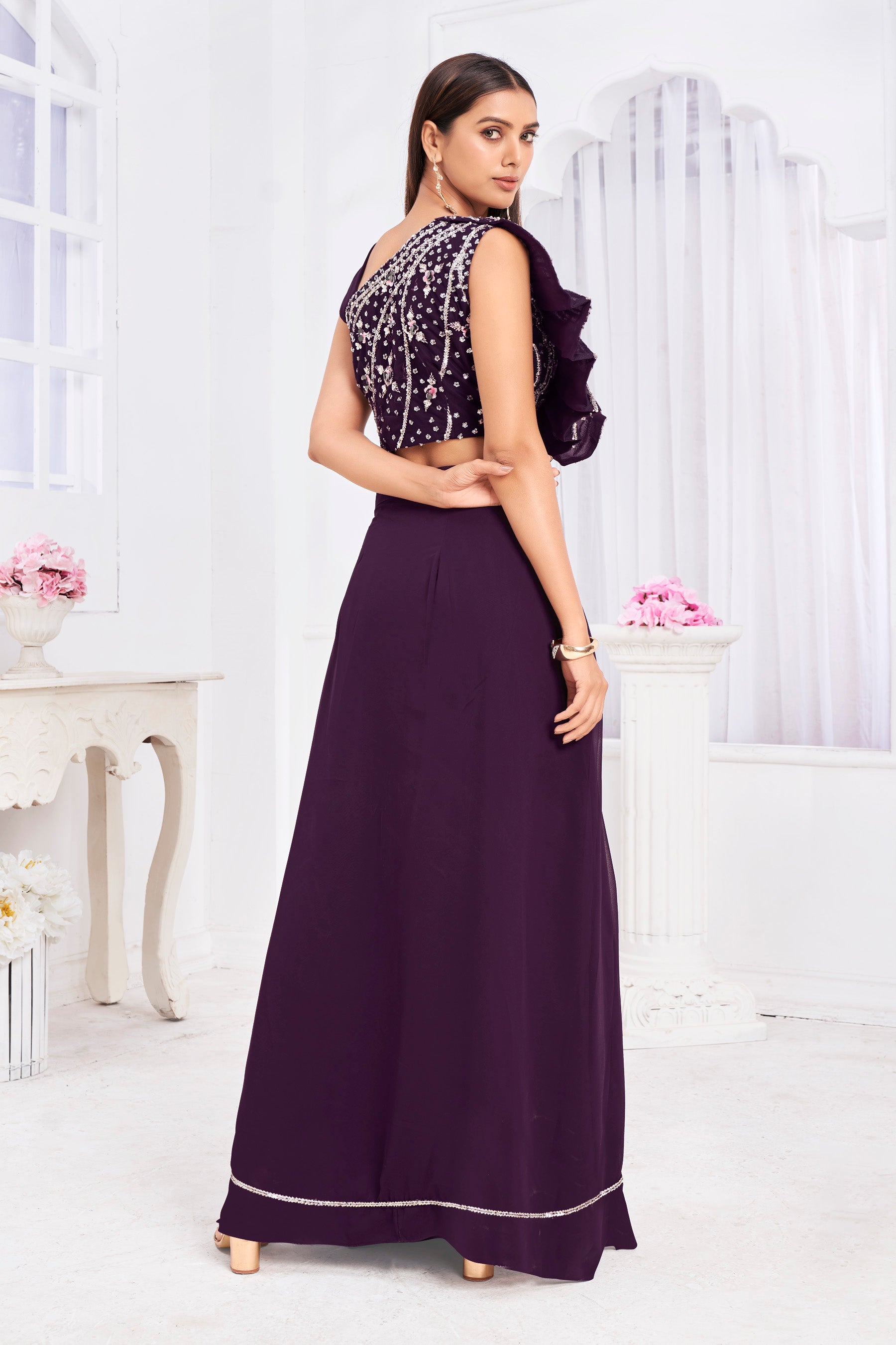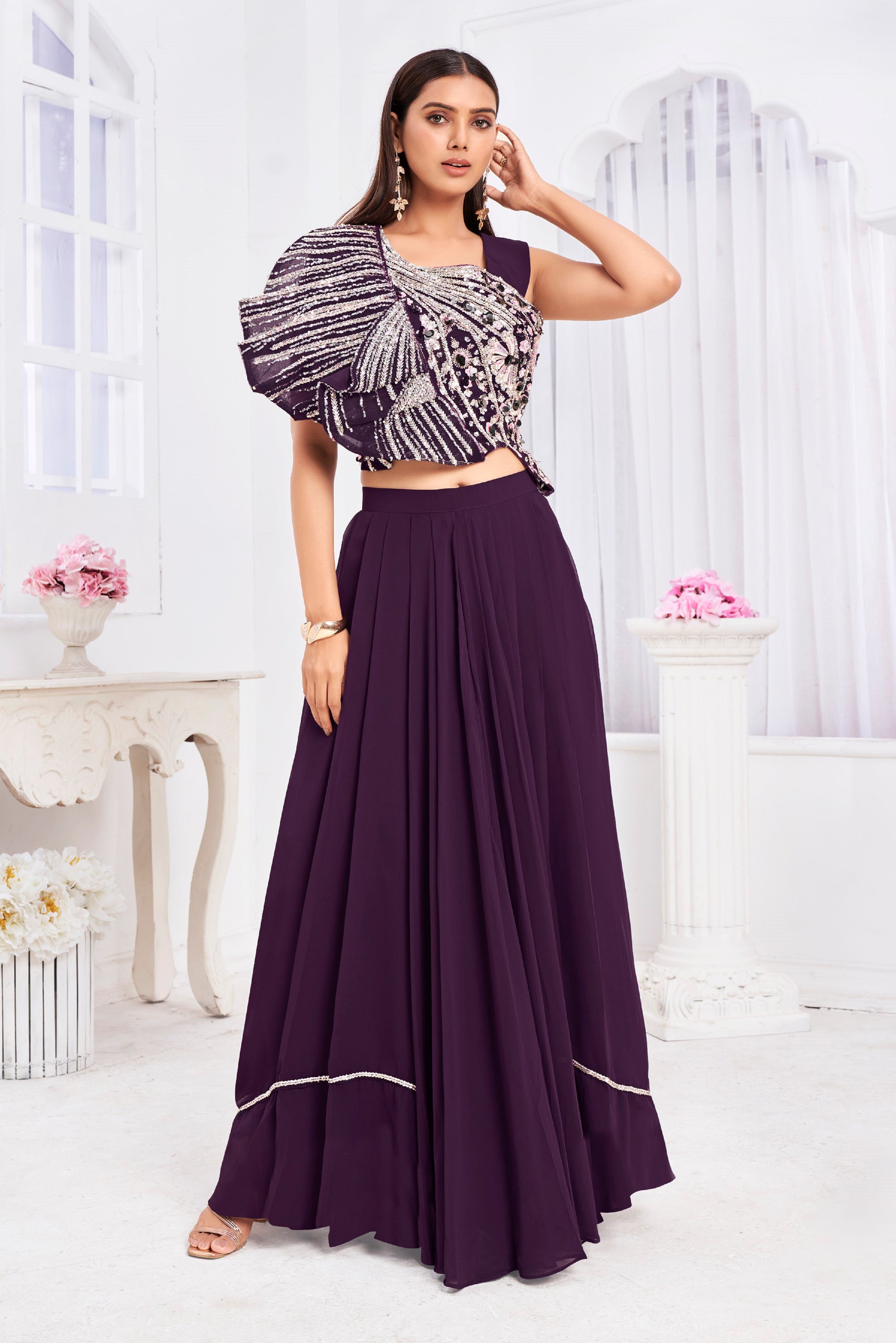 Premium Georgette Embroidery & Hand Work Fancy Crop Top/ Sharara& Choli