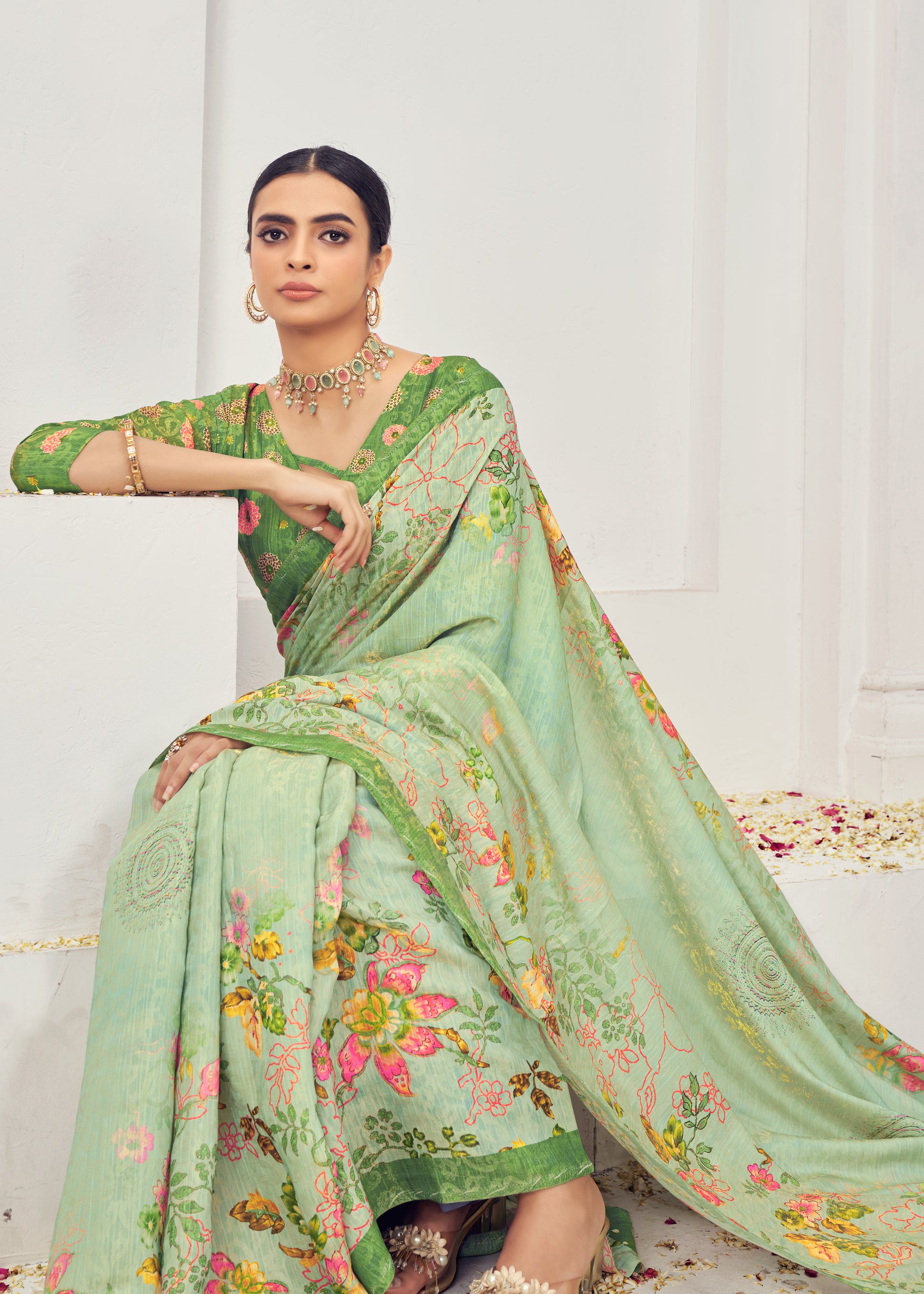 Premium Natural Silk Viscose With Pure Jacquard Zari Woven In the fabric Digital Printed Work Saree