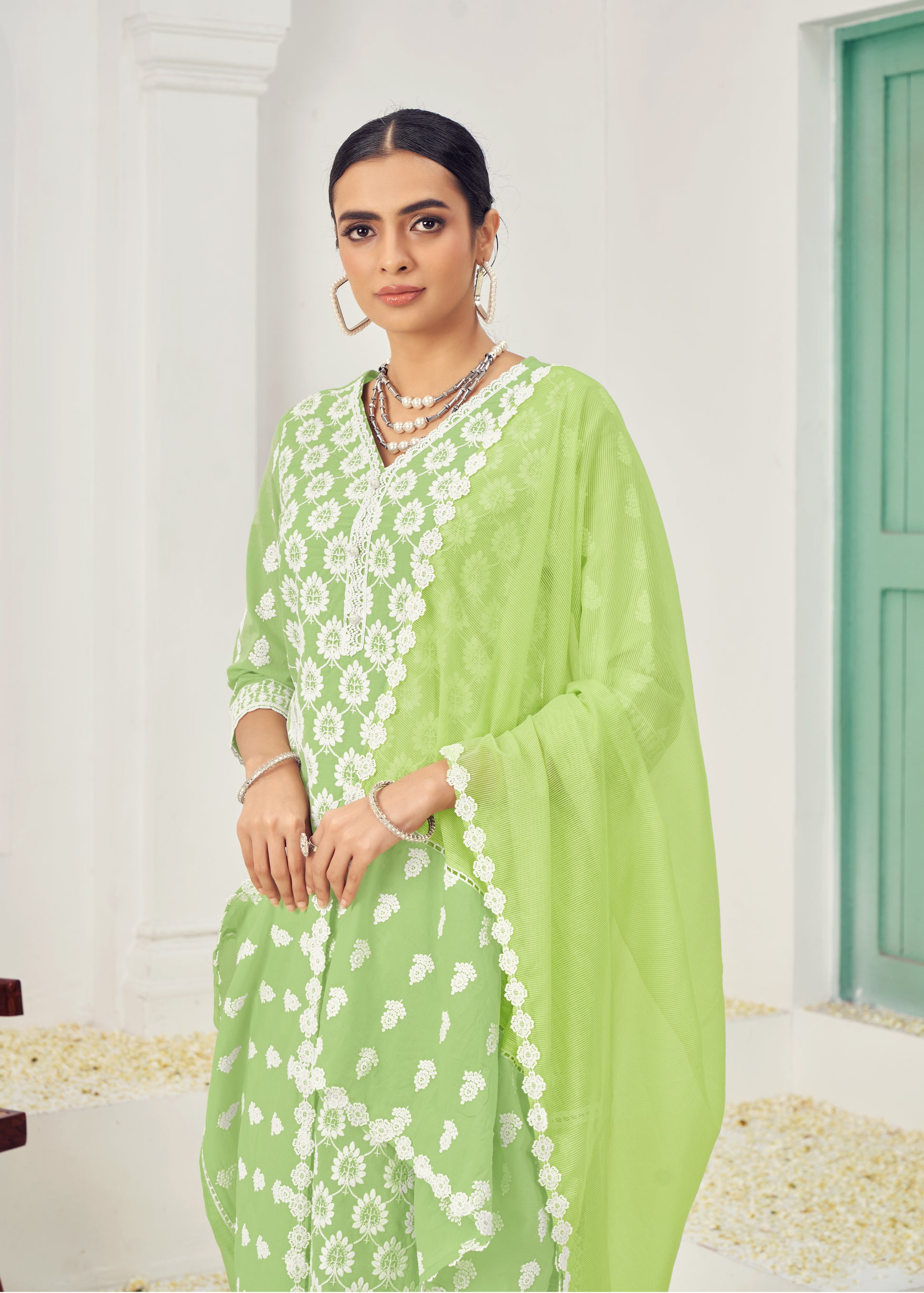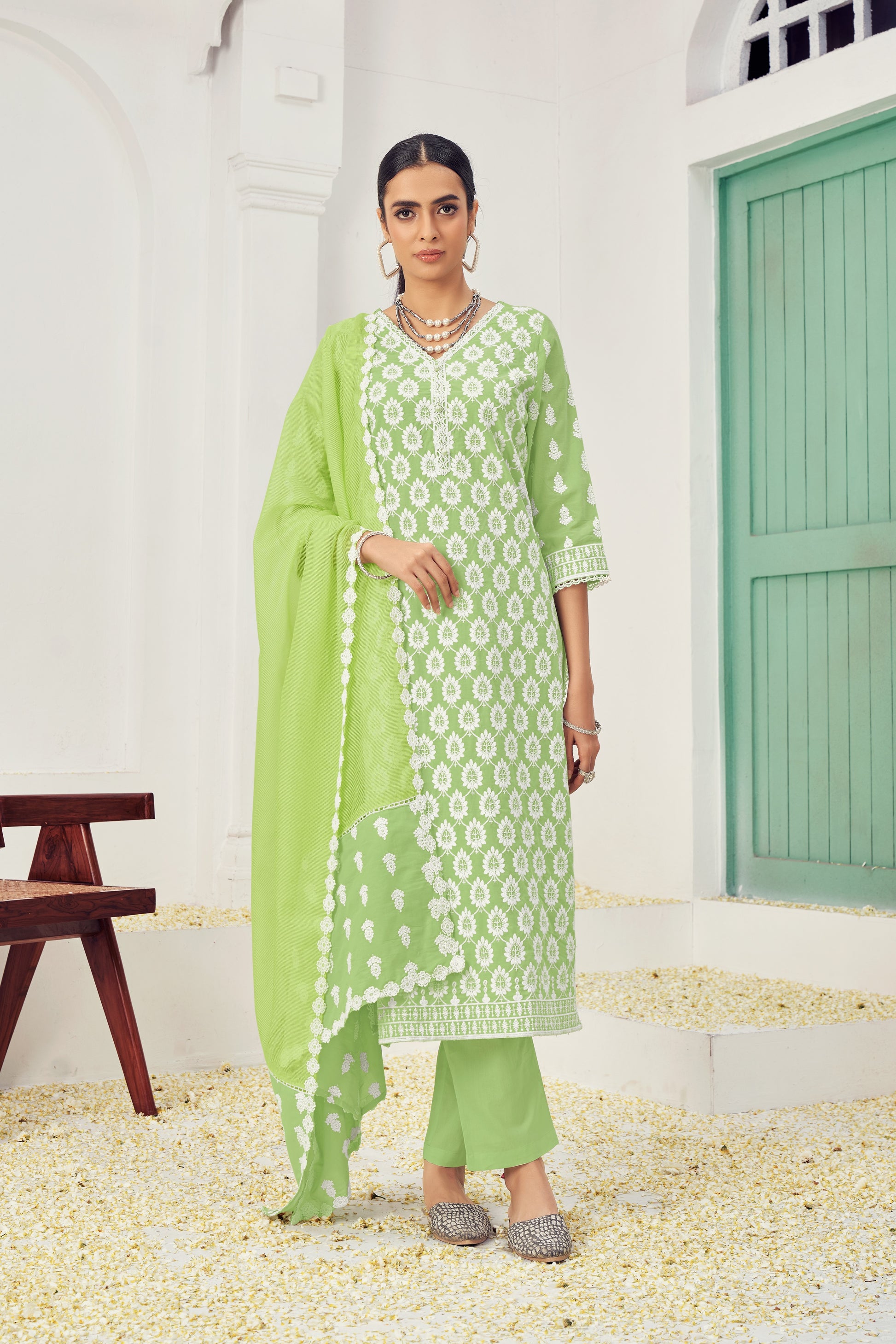 Premium Natural Viscose Jacquard Butti And Hand Work Salwar/Kameez/Dupatta/3 Pcs Set.