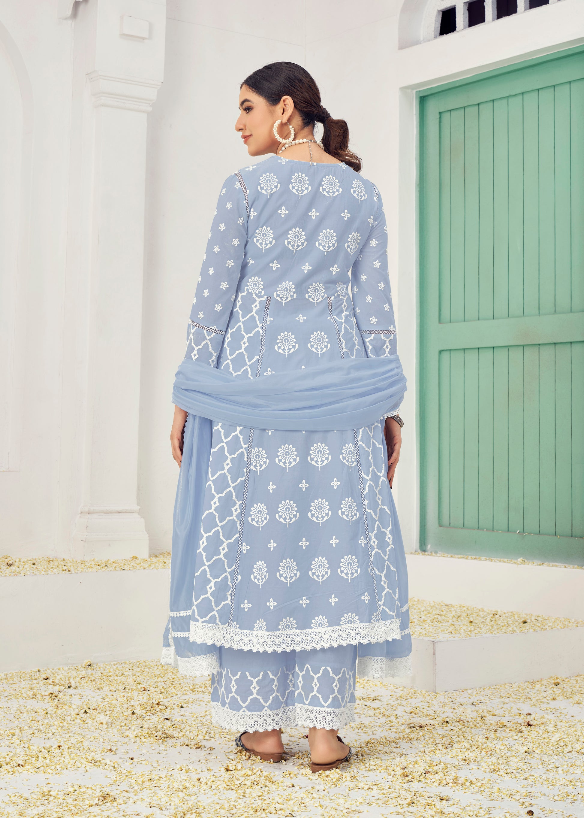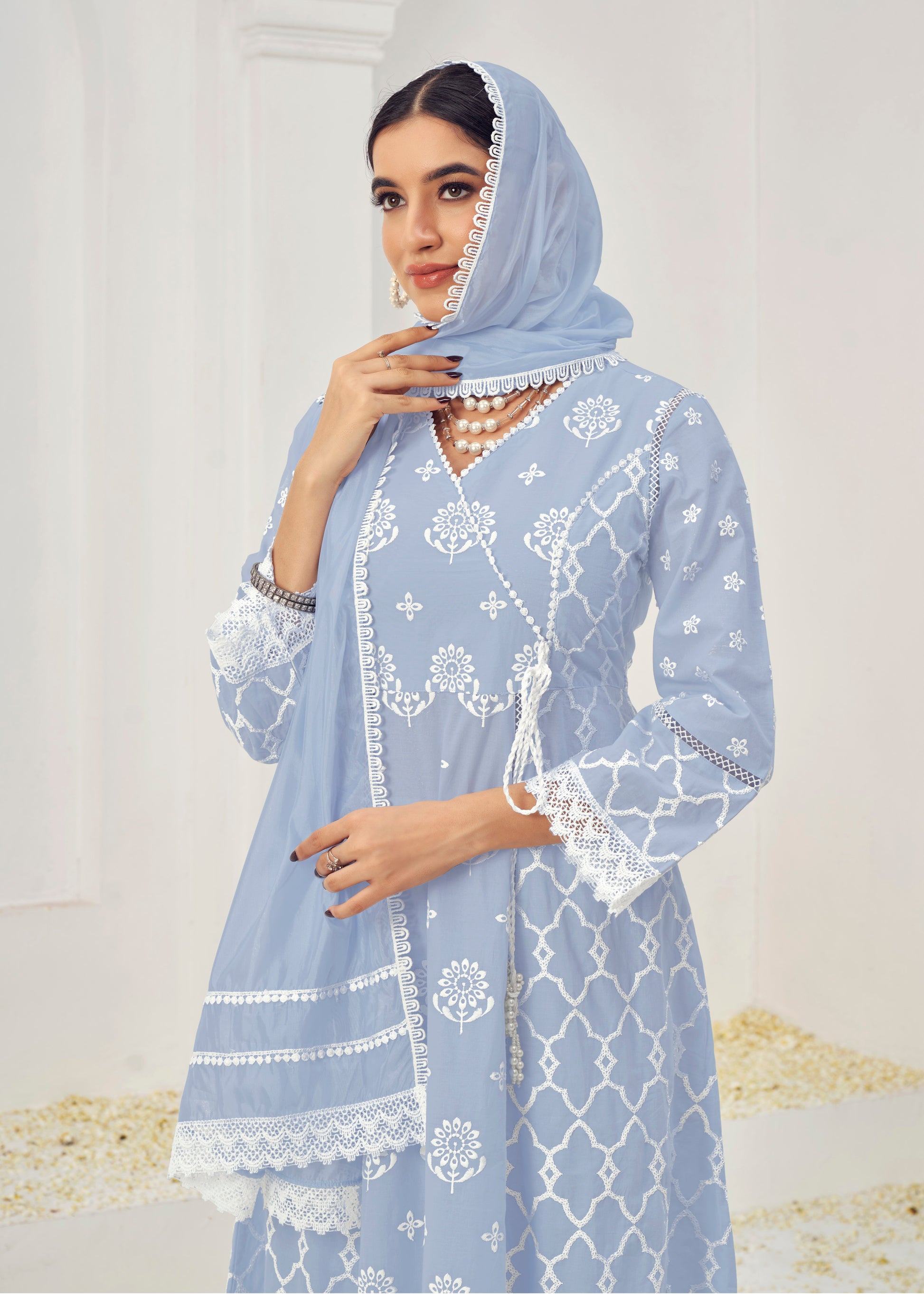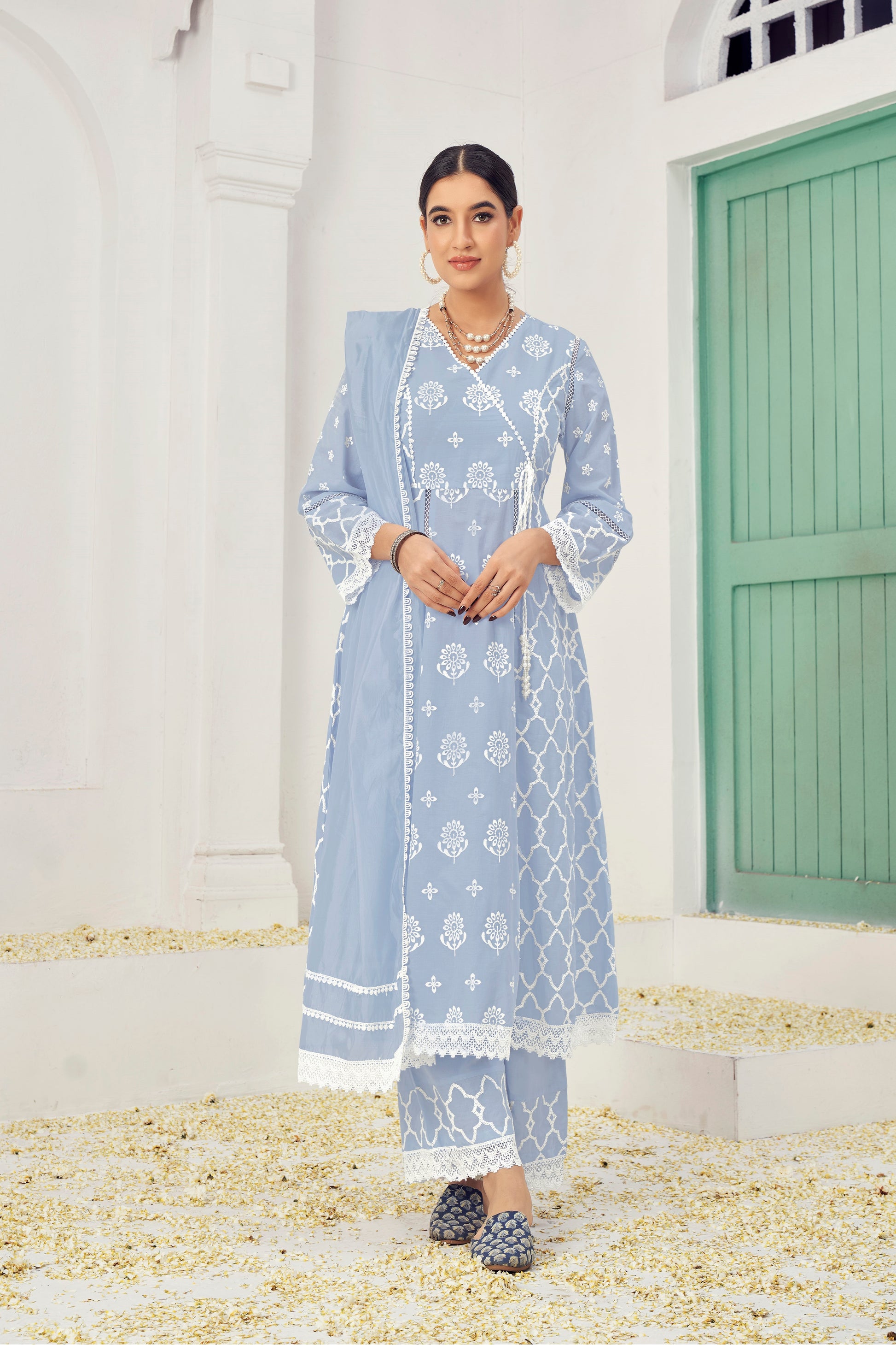 Premium Pure Cotton Fabric & Bottom Oraganza Dupatta Embroidery & Shilpi Work Salwar Kameez Dupatta 3 Pcs Set