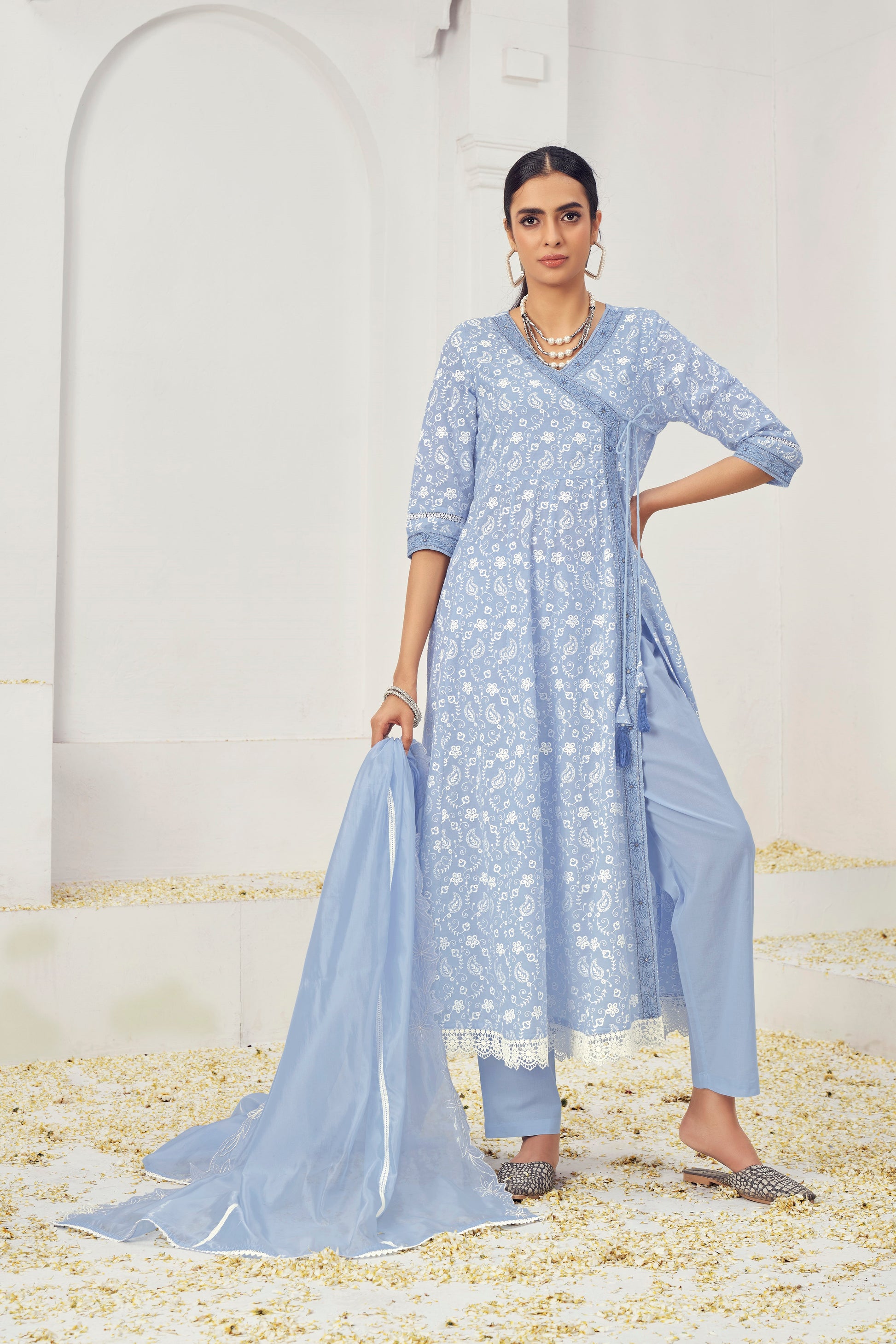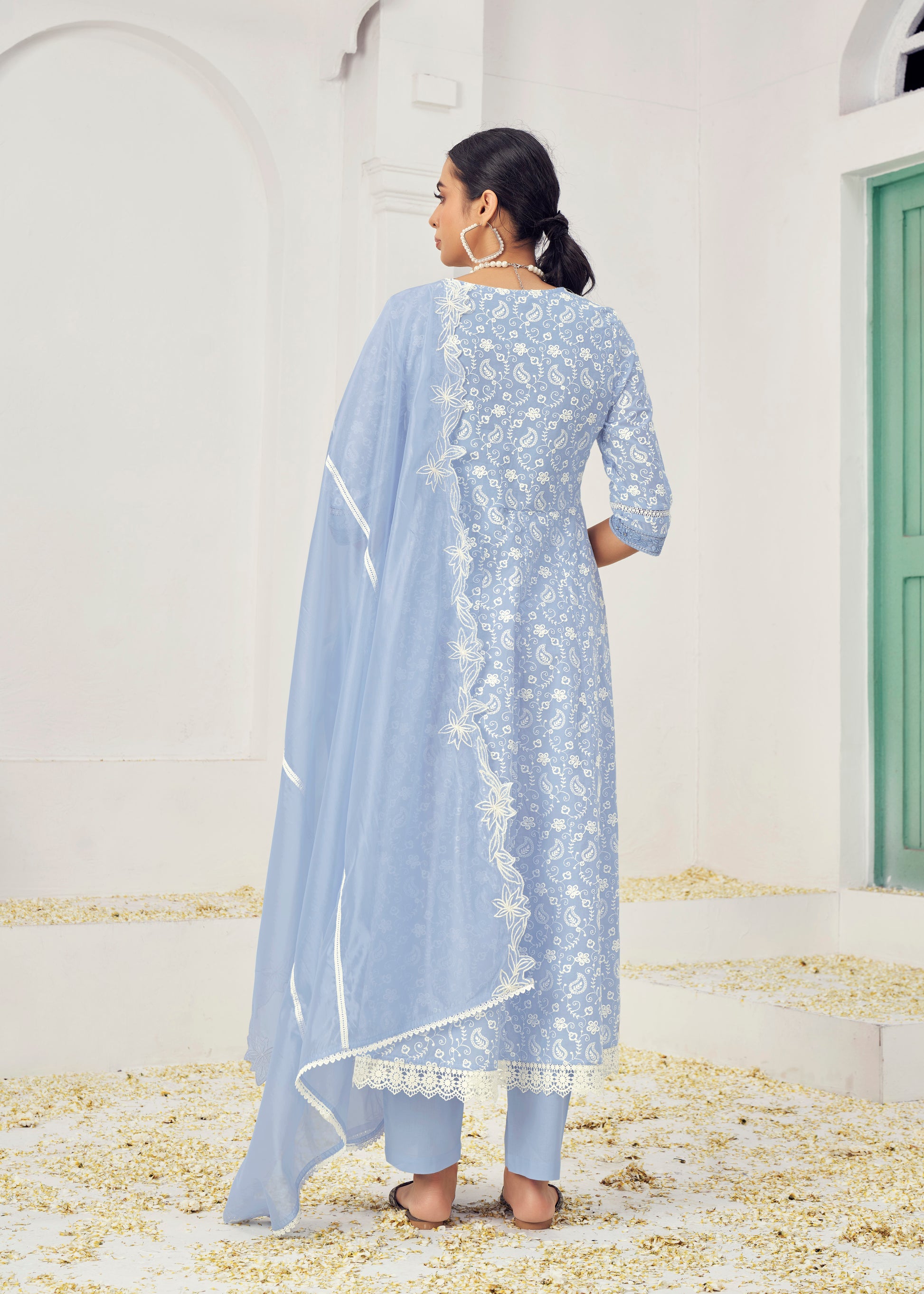 Premium Pure Cotton Fabric & Bottom Oraganza Dupatta Embroidery & Shilpi Work Salwar Kameez Dupatta 3 Pcs Set