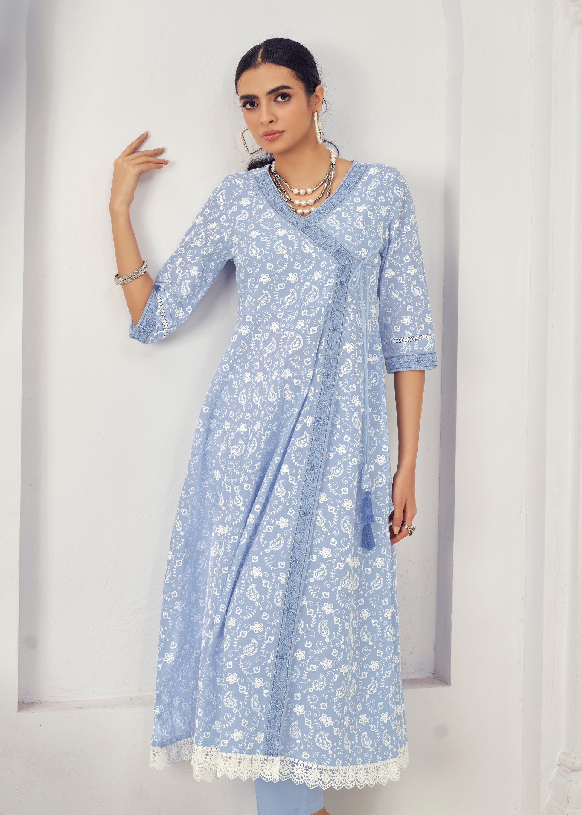 Natural-dyed colours might bleed during the first few washes or rub against the skin & other light-coloured garments. In the artful process of hand block-printing, embroidery work and stitching, variations are likely to come into existence. These irregularities are the hallmark of all handmade products and give each style a unique identity.