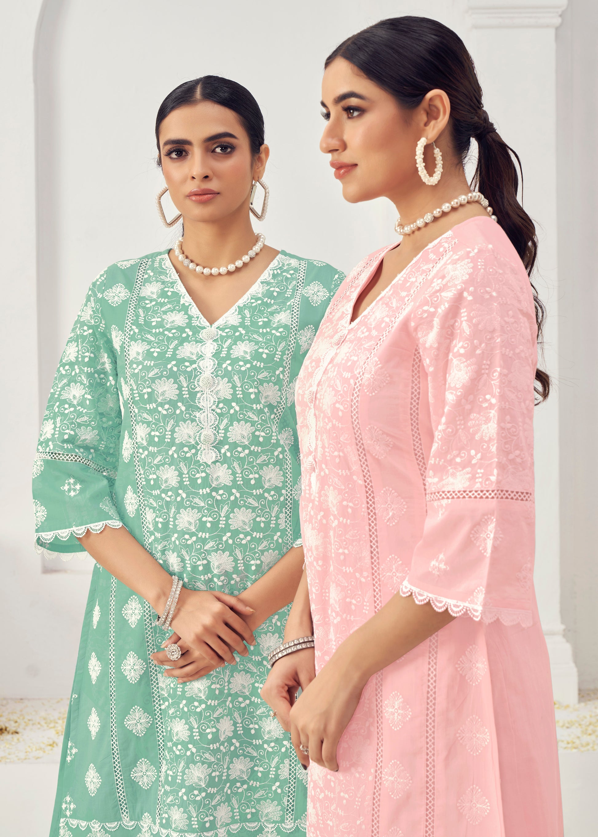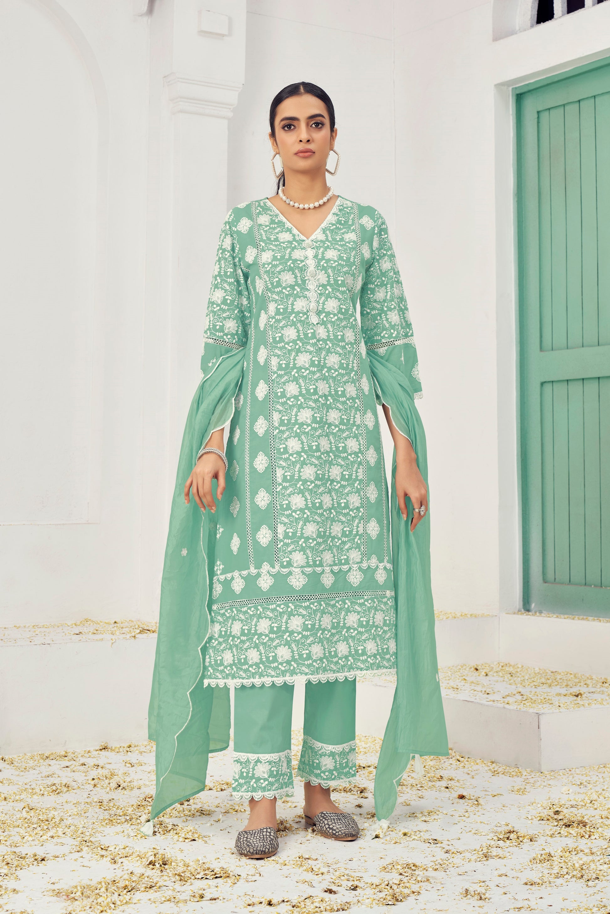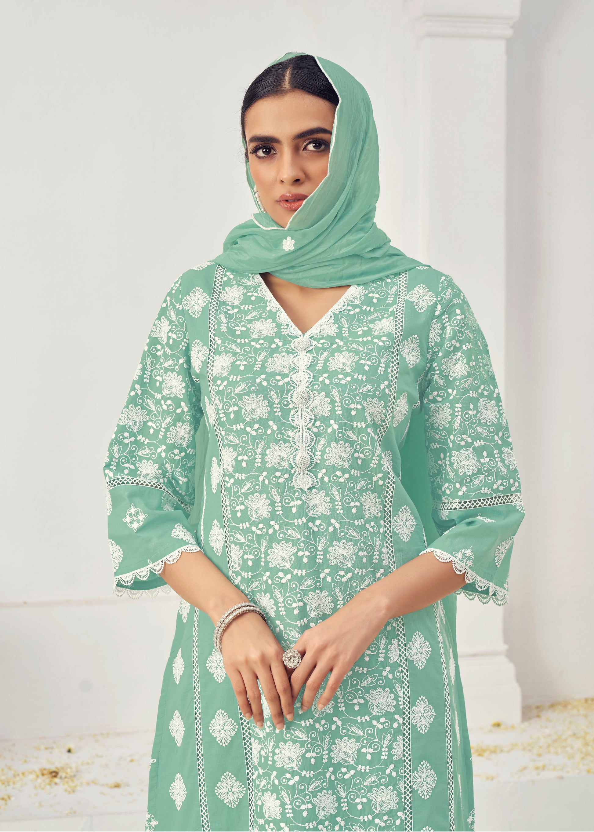 Premium Pure Cotton Top Bottom Fabric Poly Chanderi Dupatta Lakhanvi Style Boring Embroidery Work Salwar Kameez Dupatta 3 Pcs Set