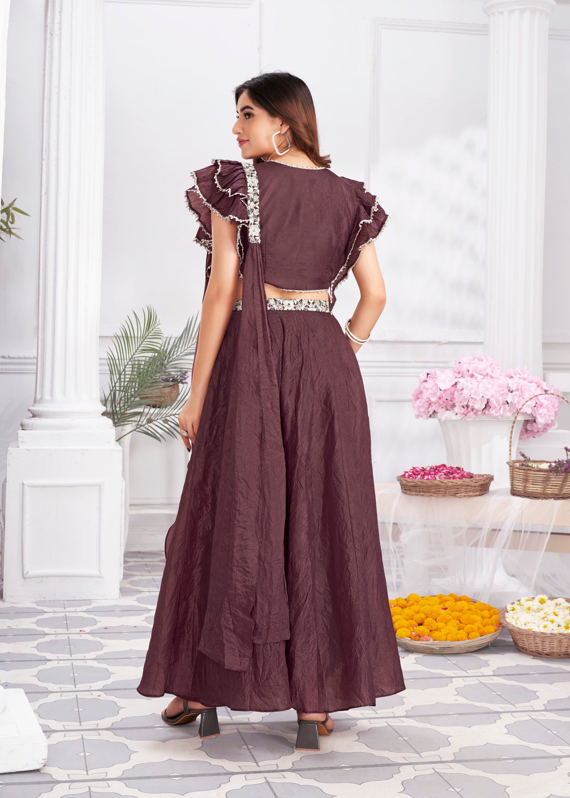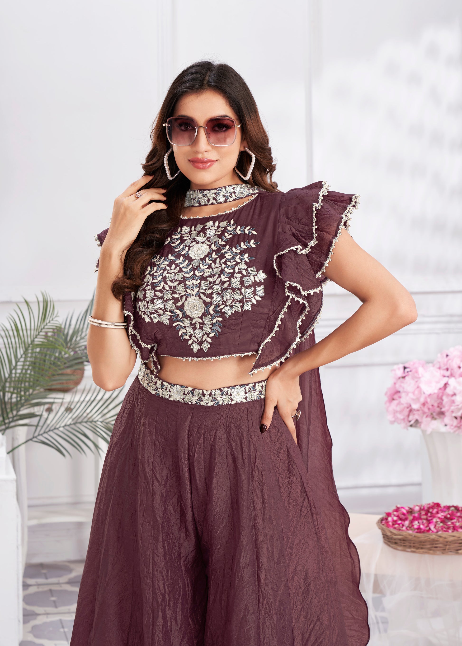 Premium Shimmer Georgette & Fancy Fabric Embroidery & Hand Work Fancy Crop Top/Sharara & Choli