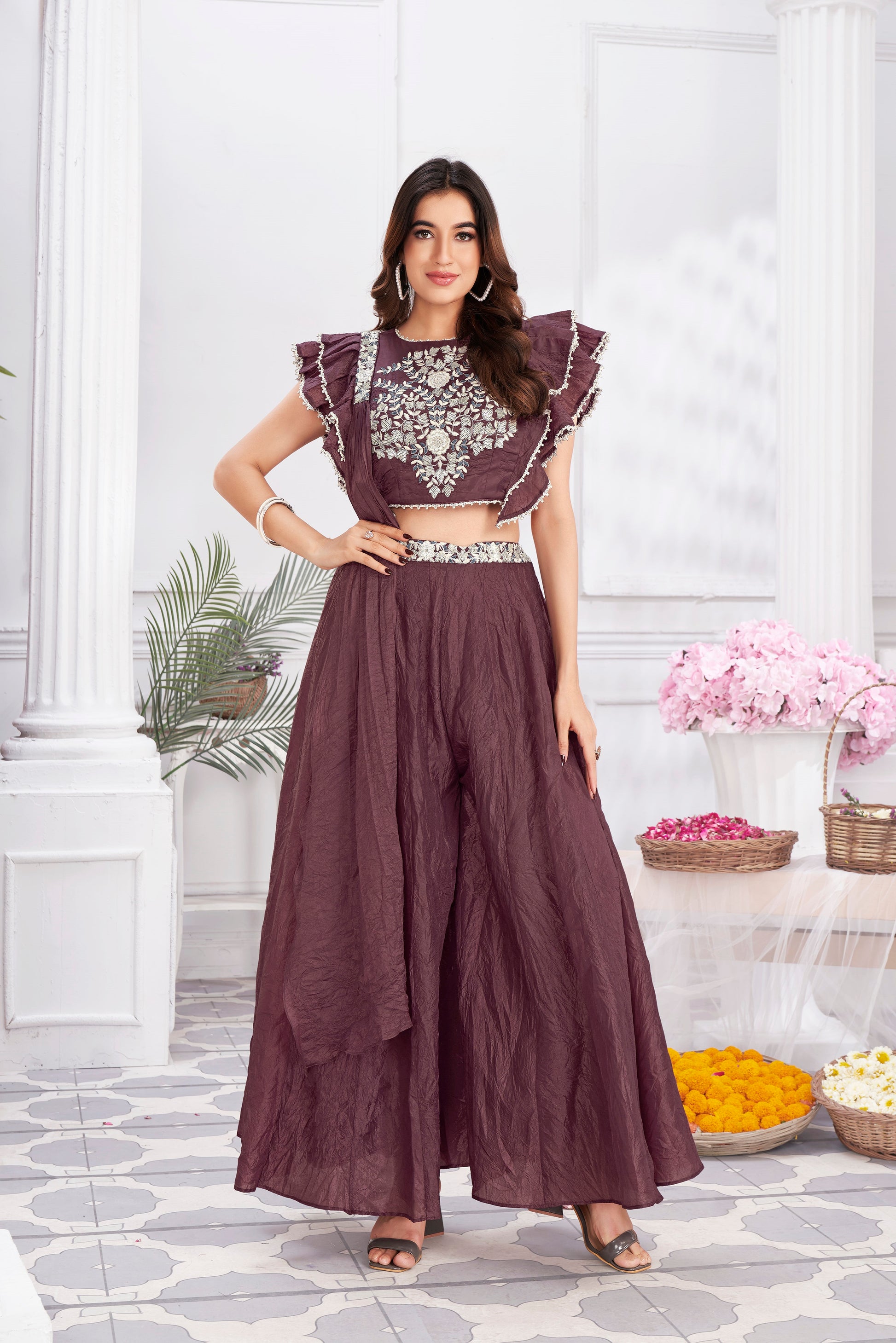 Premium Shimmer Georgette & Fancy Fabric Embroidery & Hand Work Fancy Crop Top/Sharara & CholiÂ