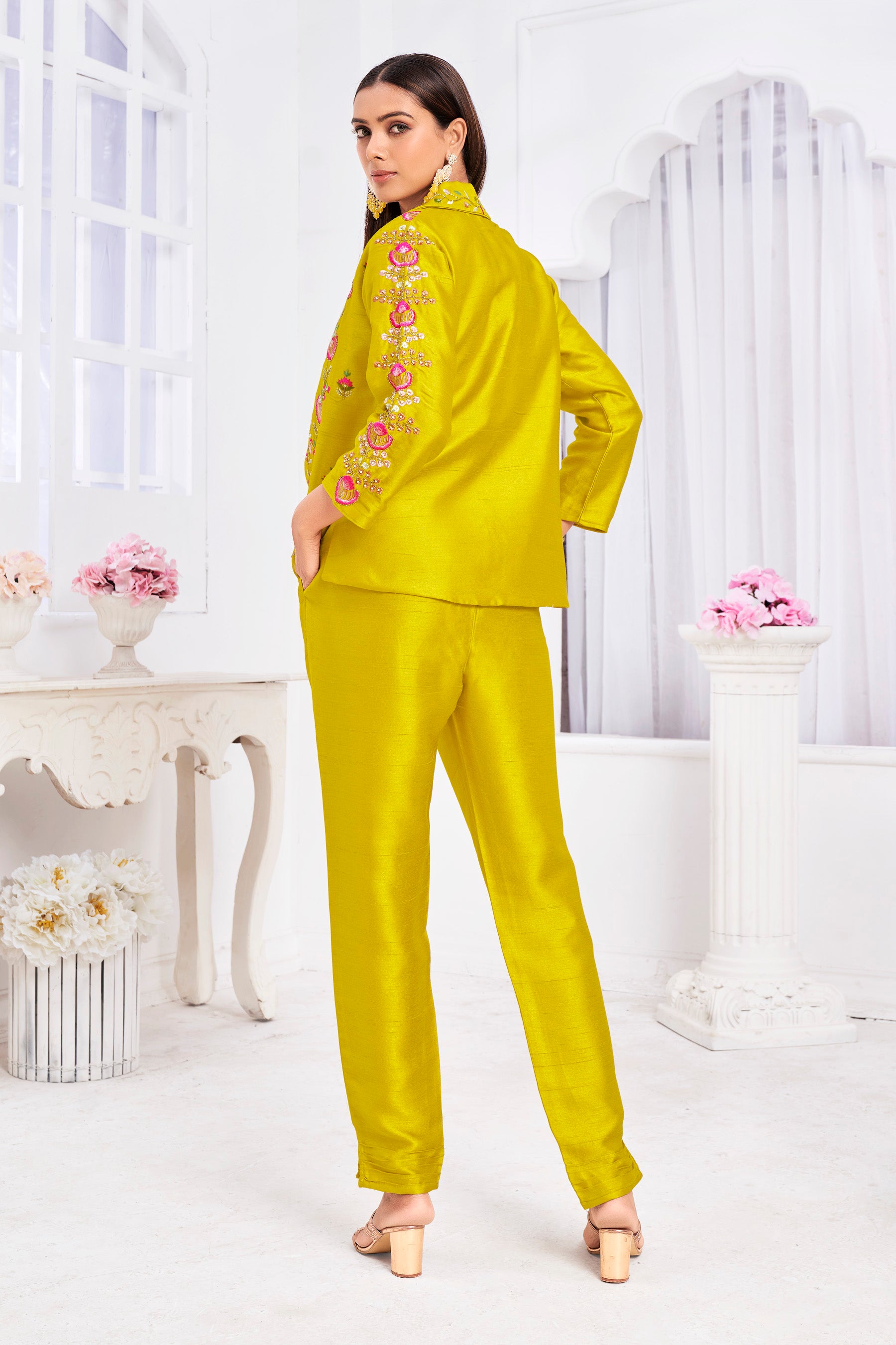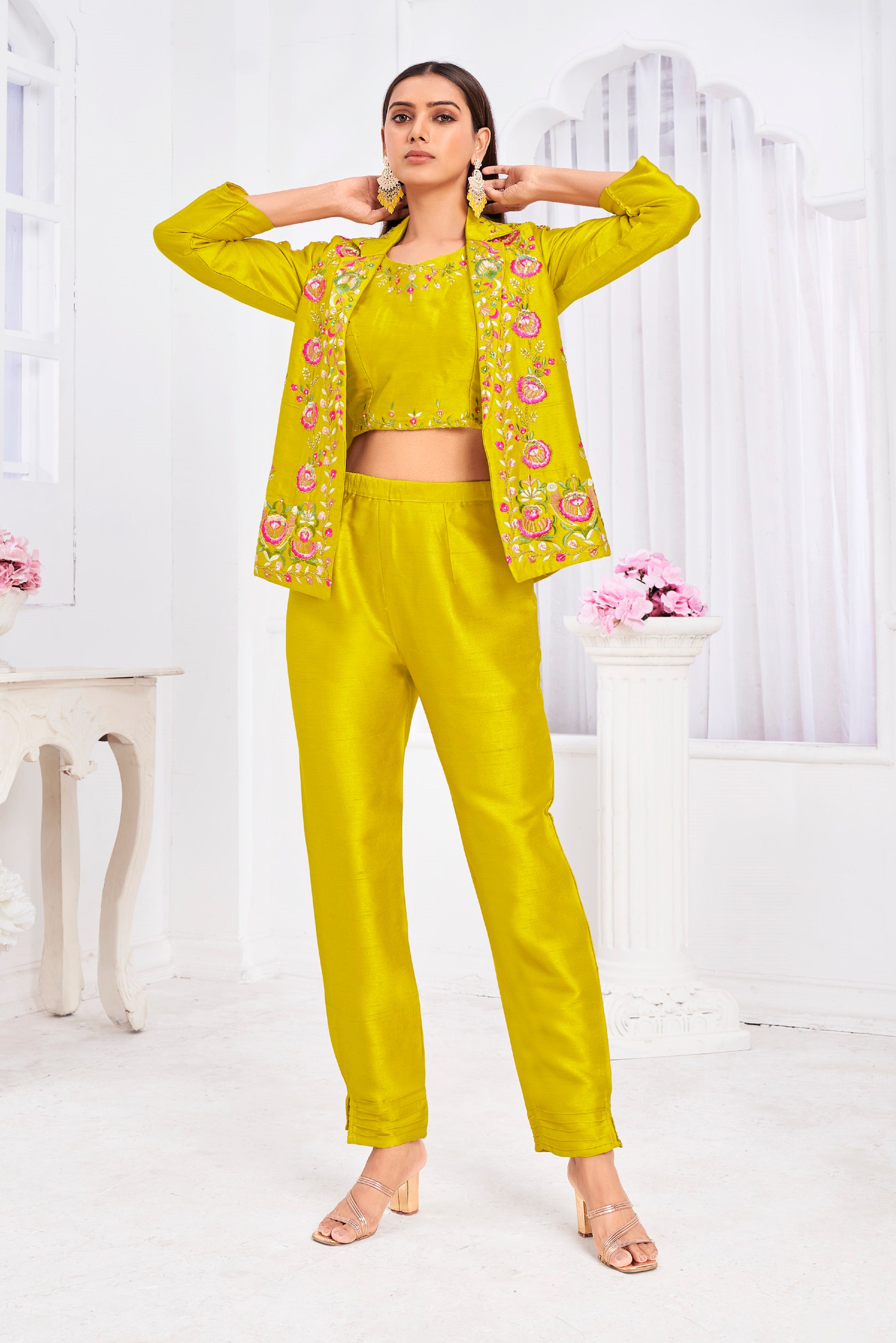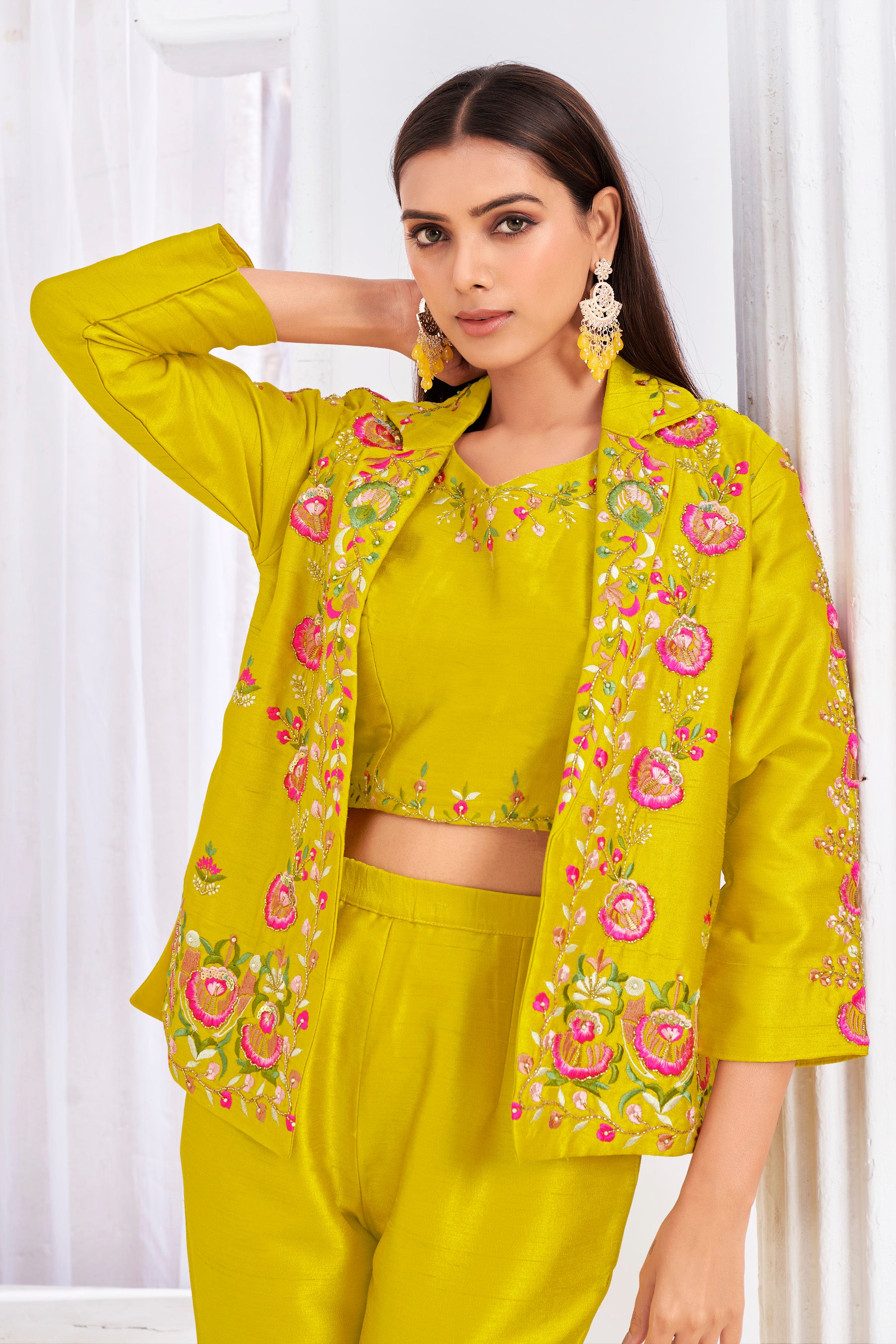 Premium Tussar Silk Embroidery & Hand Work Fancy Crop Top/Jacket & Choli & Pent