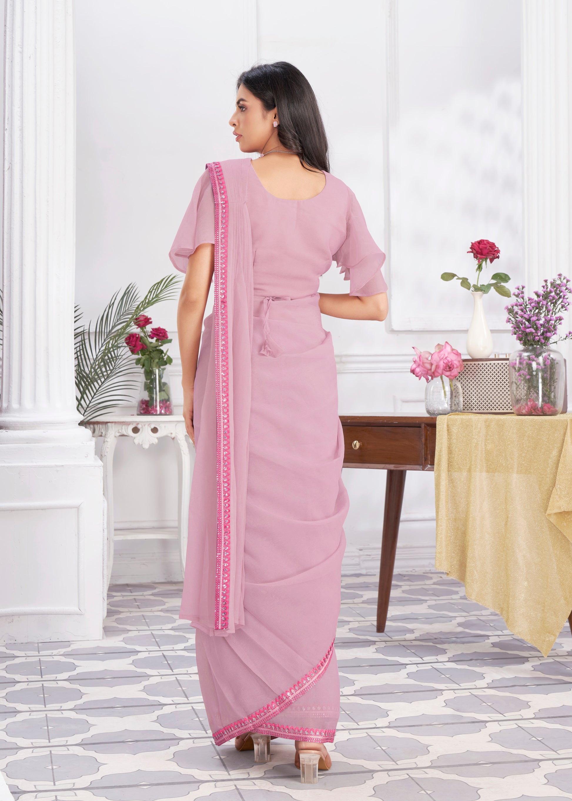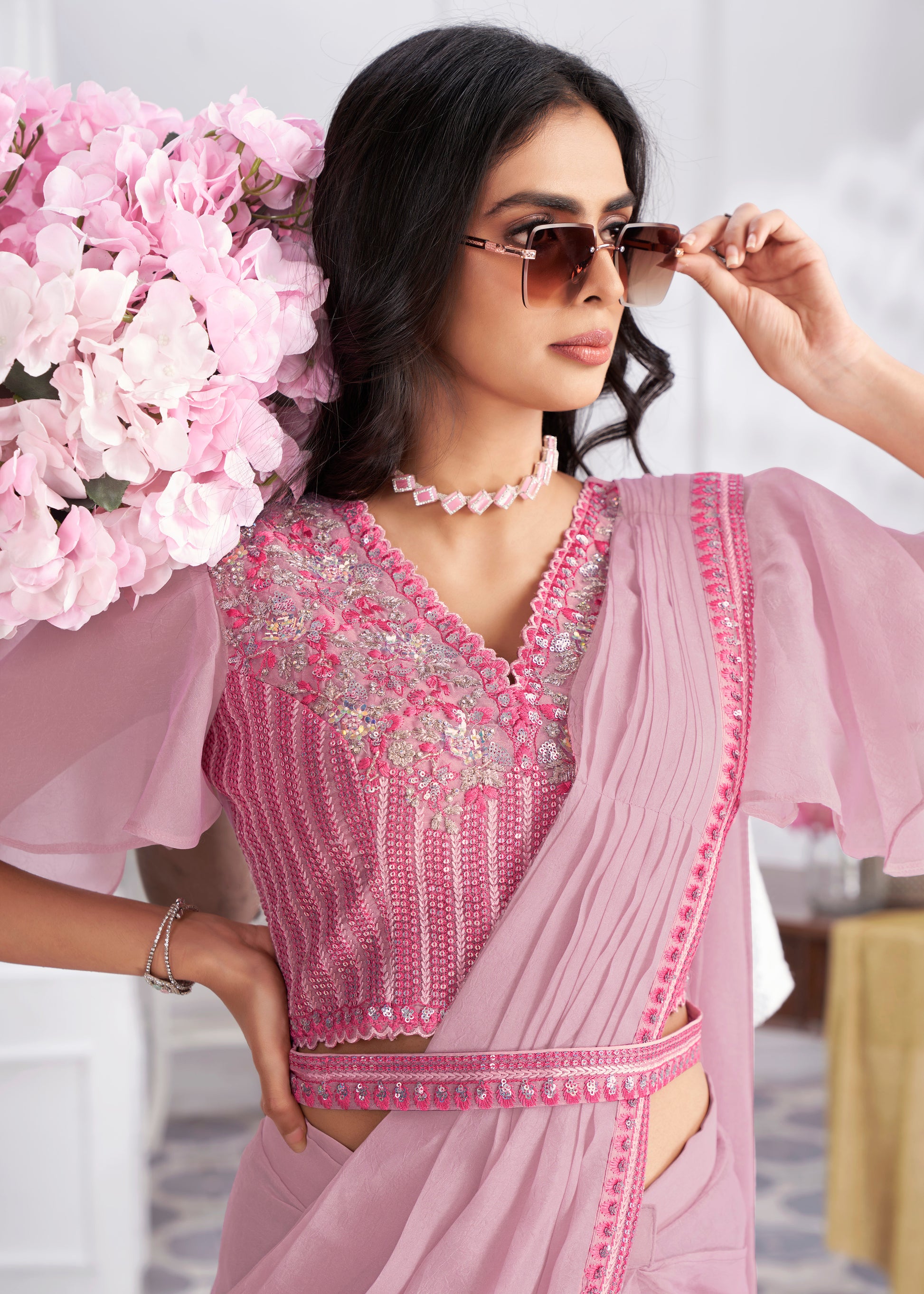 Premium Shimmer Georgette Ready to Wear Saree & Stitched Blouse With Embroidery And Sequins Work Stitched Pallu Fancy Drape Sarees