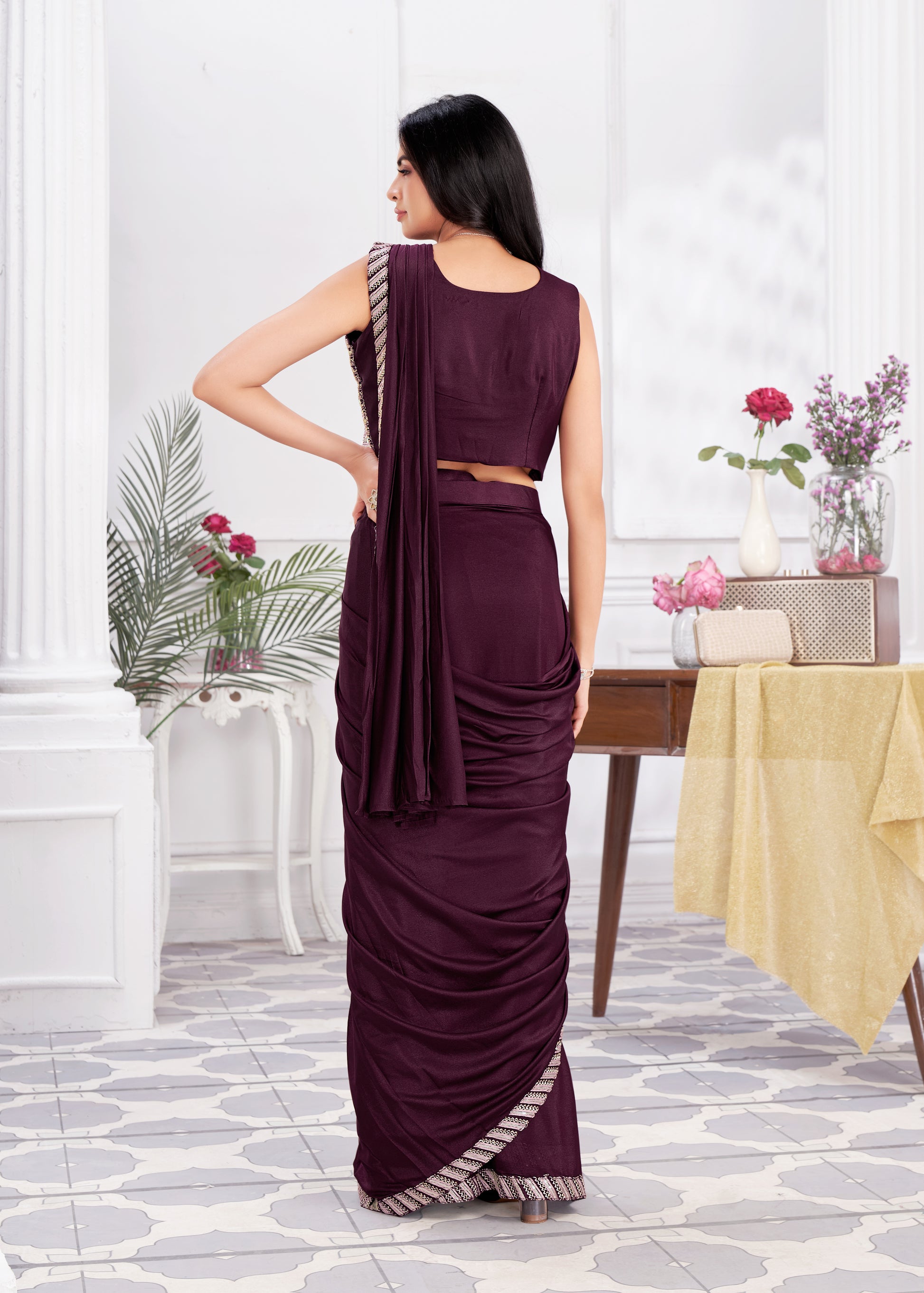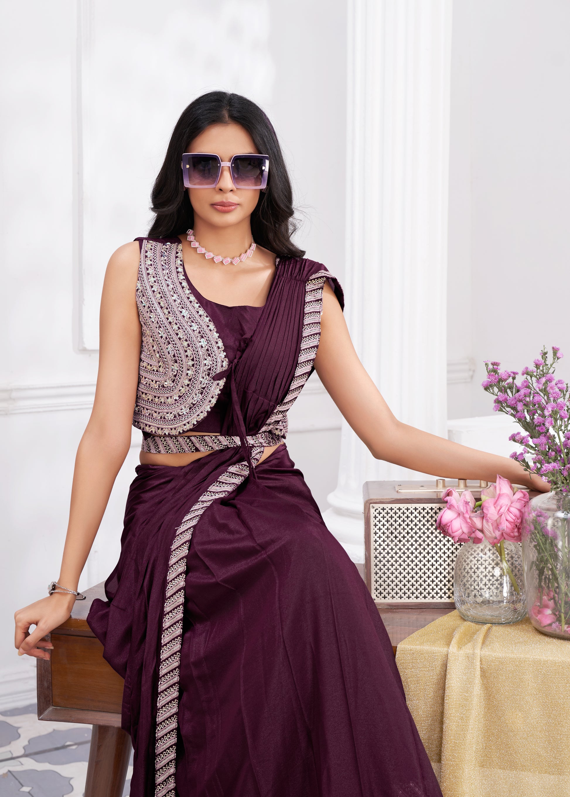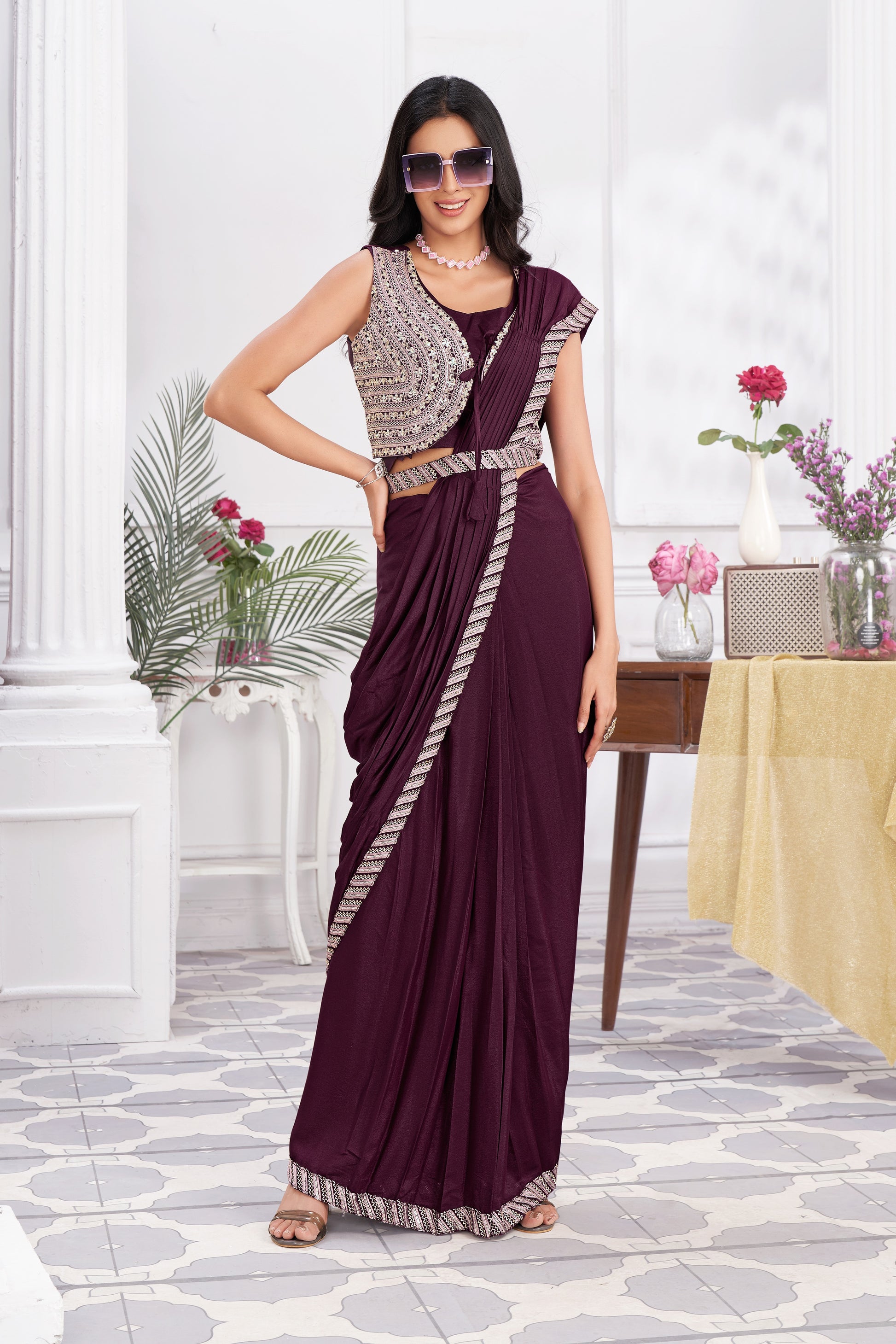 Premium Shimmer Georgette Ready to Wear Saree & Stitched Blouse With Embroidery And Sequins Work Stitched Pallu Fancy Drape Sarees