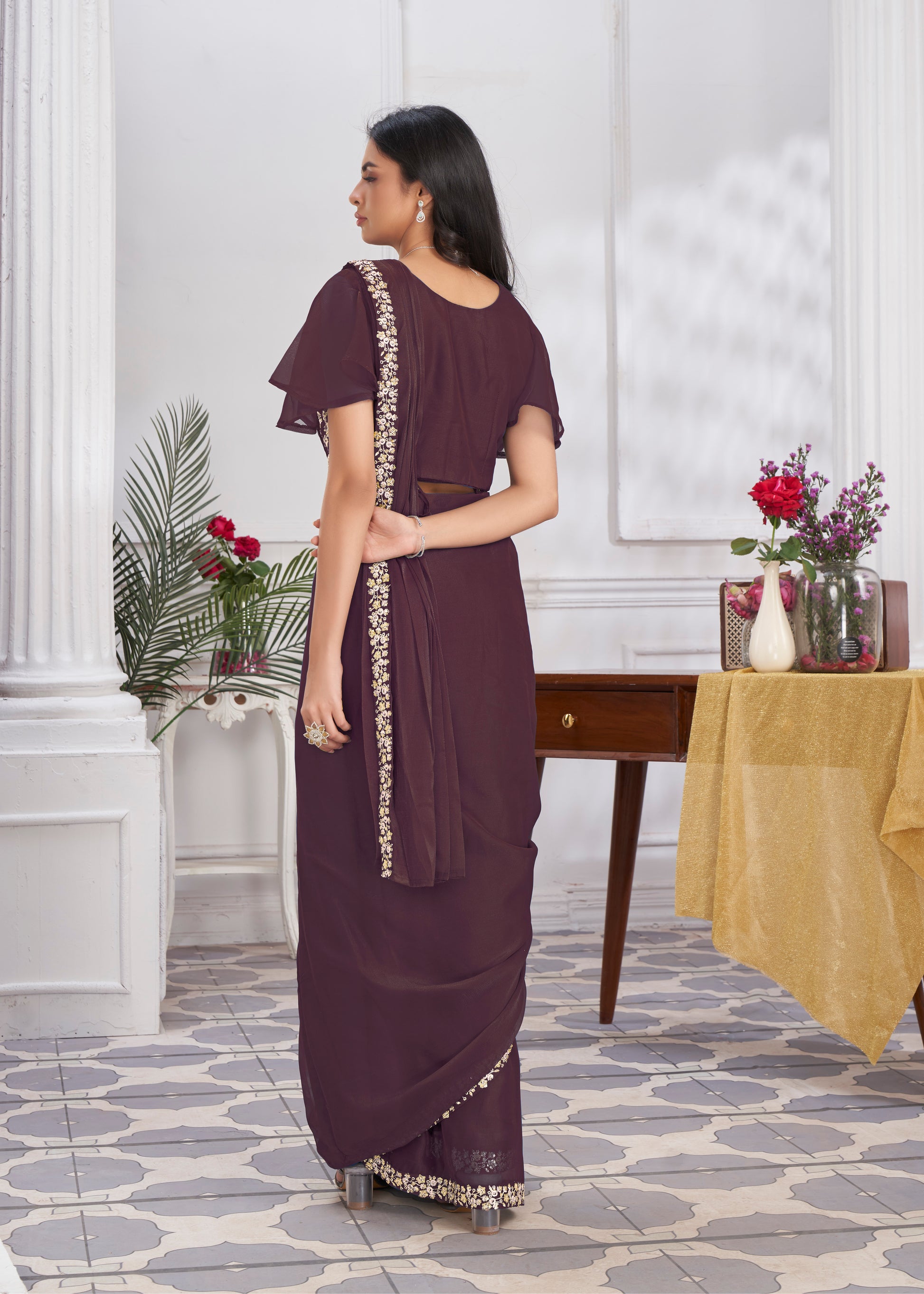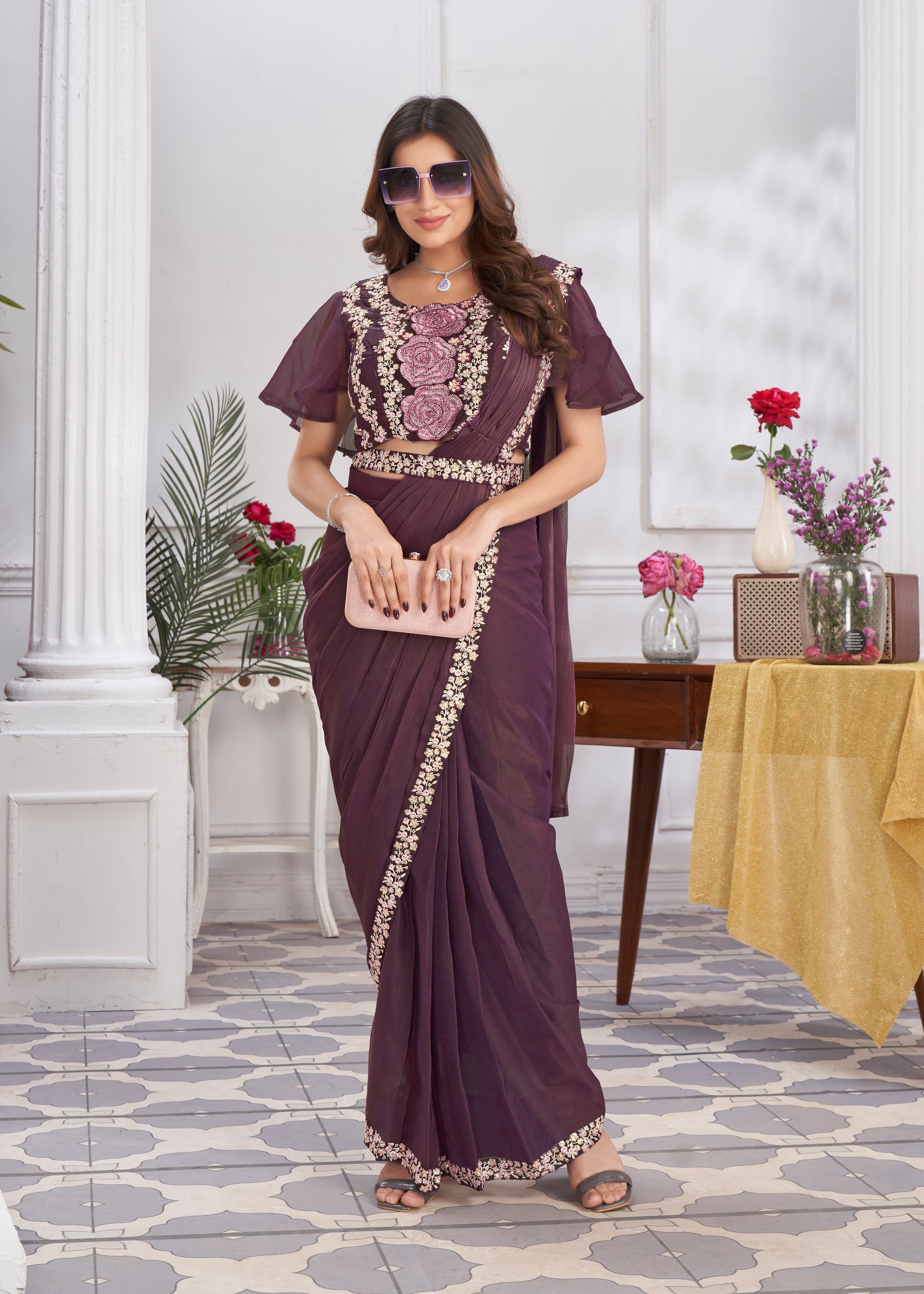 Premium Shimmer Georgette Ready to Wear Saree & Stitched Blouse With Embroidery And Sequins Work Stitched Pallu Fancy Drape Sarees