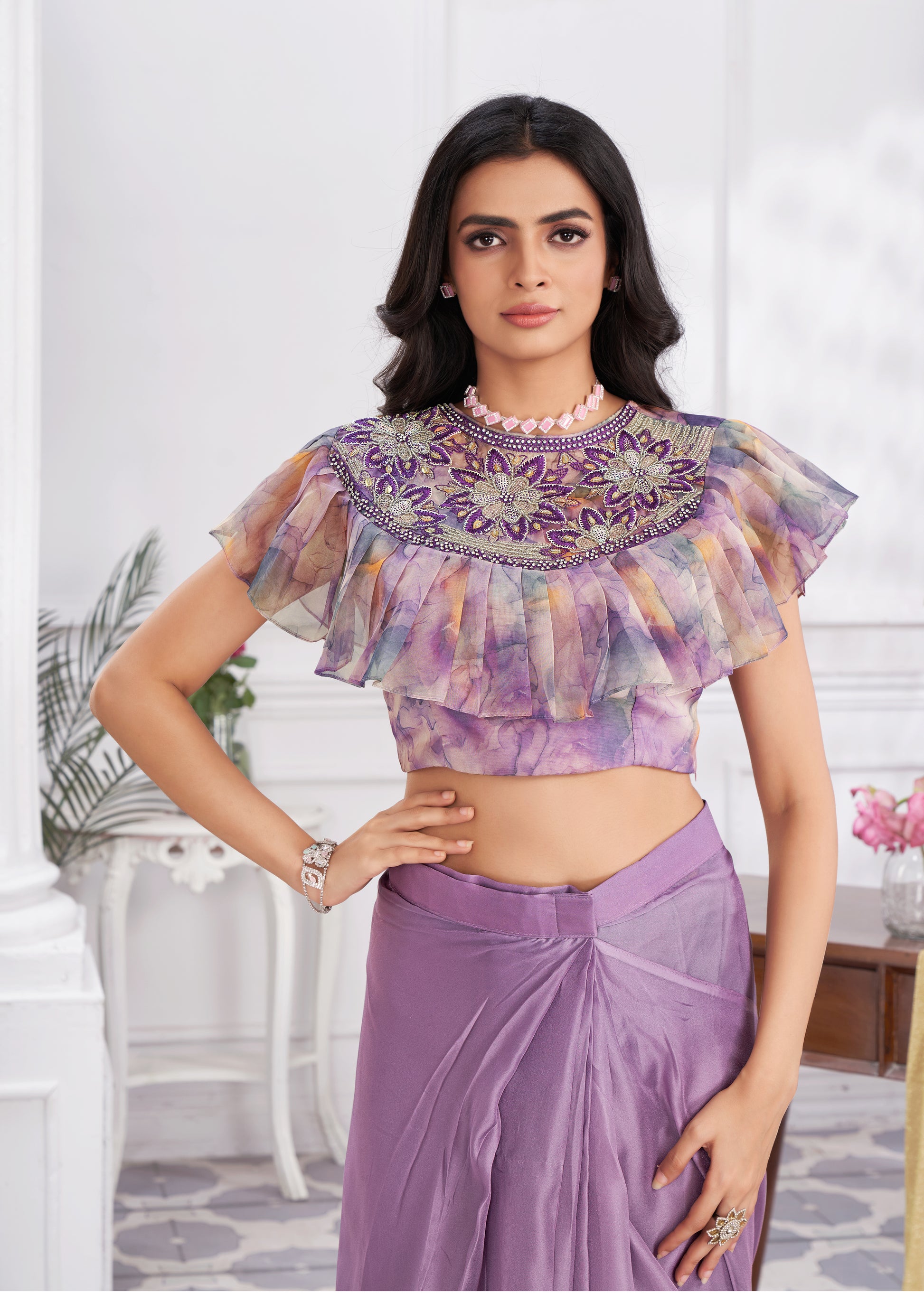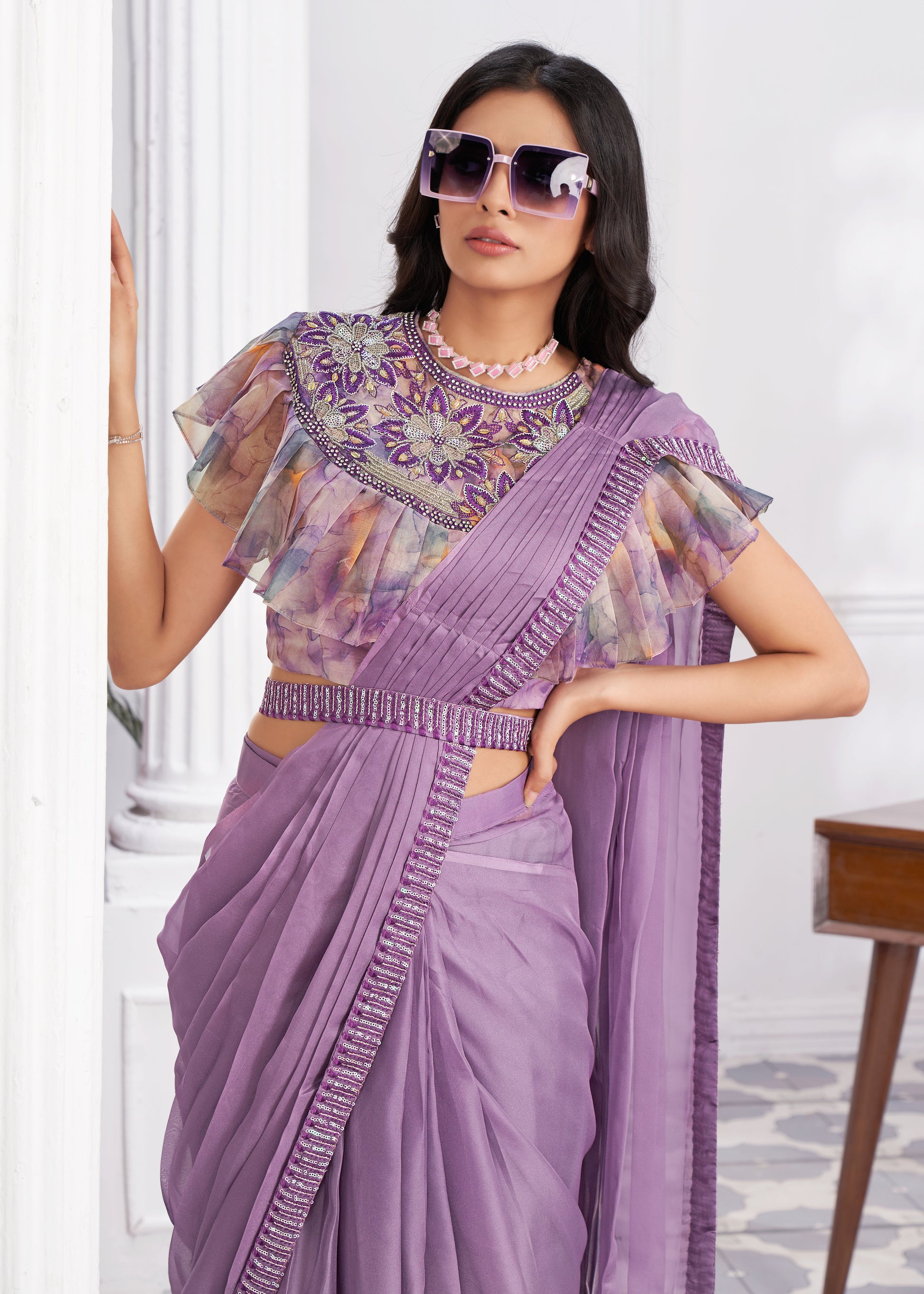 Premium Shimmer Georgette Ready to Wear Saree & Stitched Blouse With Embroidery And Sequins Work Stitched Pallu Fancy Drape Sarees