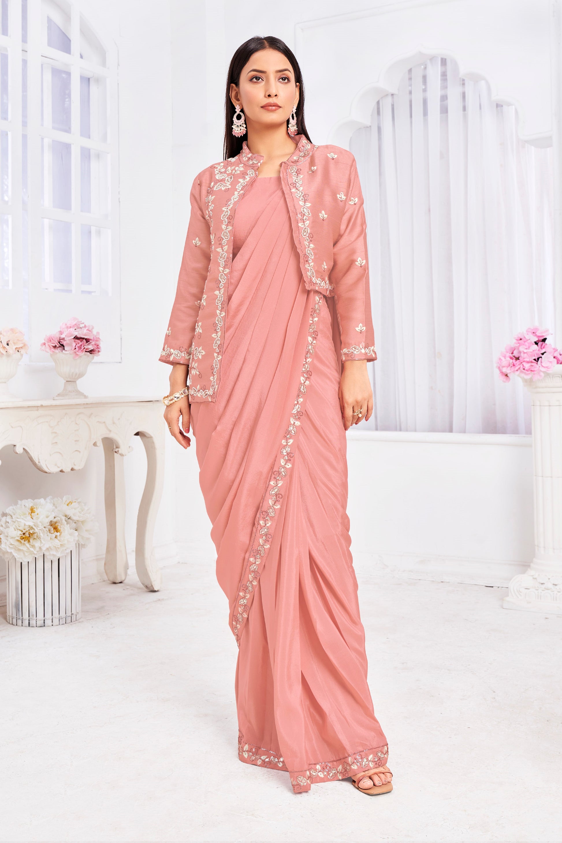 Premium Georgette Embroidery & Hand Work Fancy Drape Saree /Saree & jacket Choli