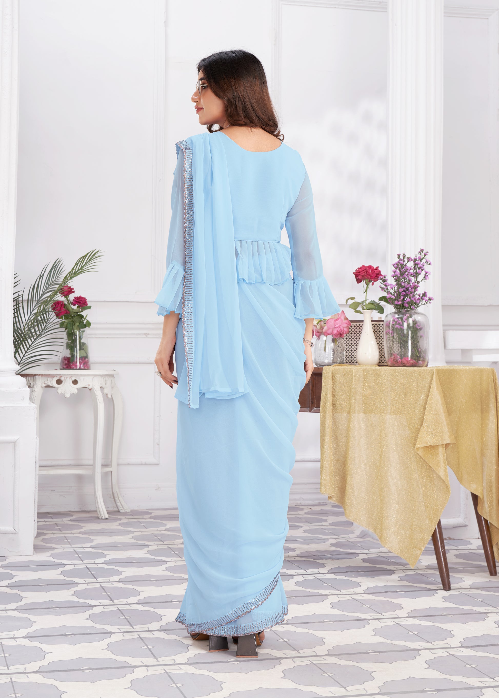 Premium Georgette Ready to Wear Saree & Stitched Blouse With Embroidery And Sequins Work Stitched Pallu Fancy Drape Sarees